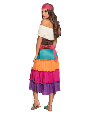 Buntes Wahrsagerin-Kostüm für Damen mit braunem Taillengürtel