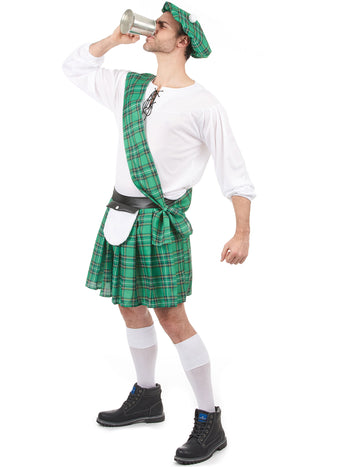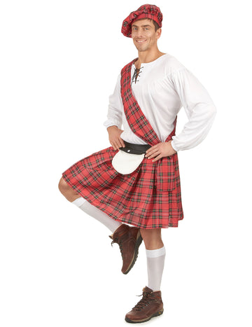 Inklusive: Baskenmütze , Kilt mit Schal , Gürtel mit Tasche
