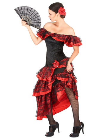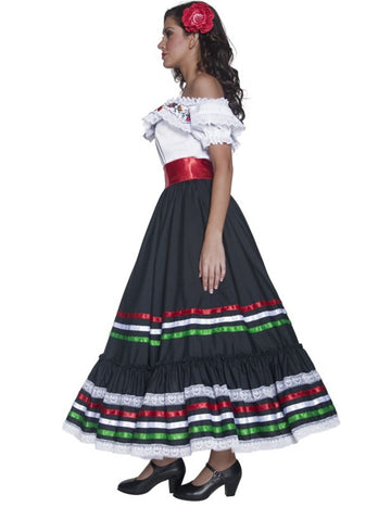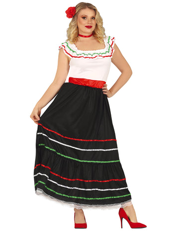 Mexiko-Damenkostüm Länder-Verkleidung für Fasching schwarz-weiss-rot