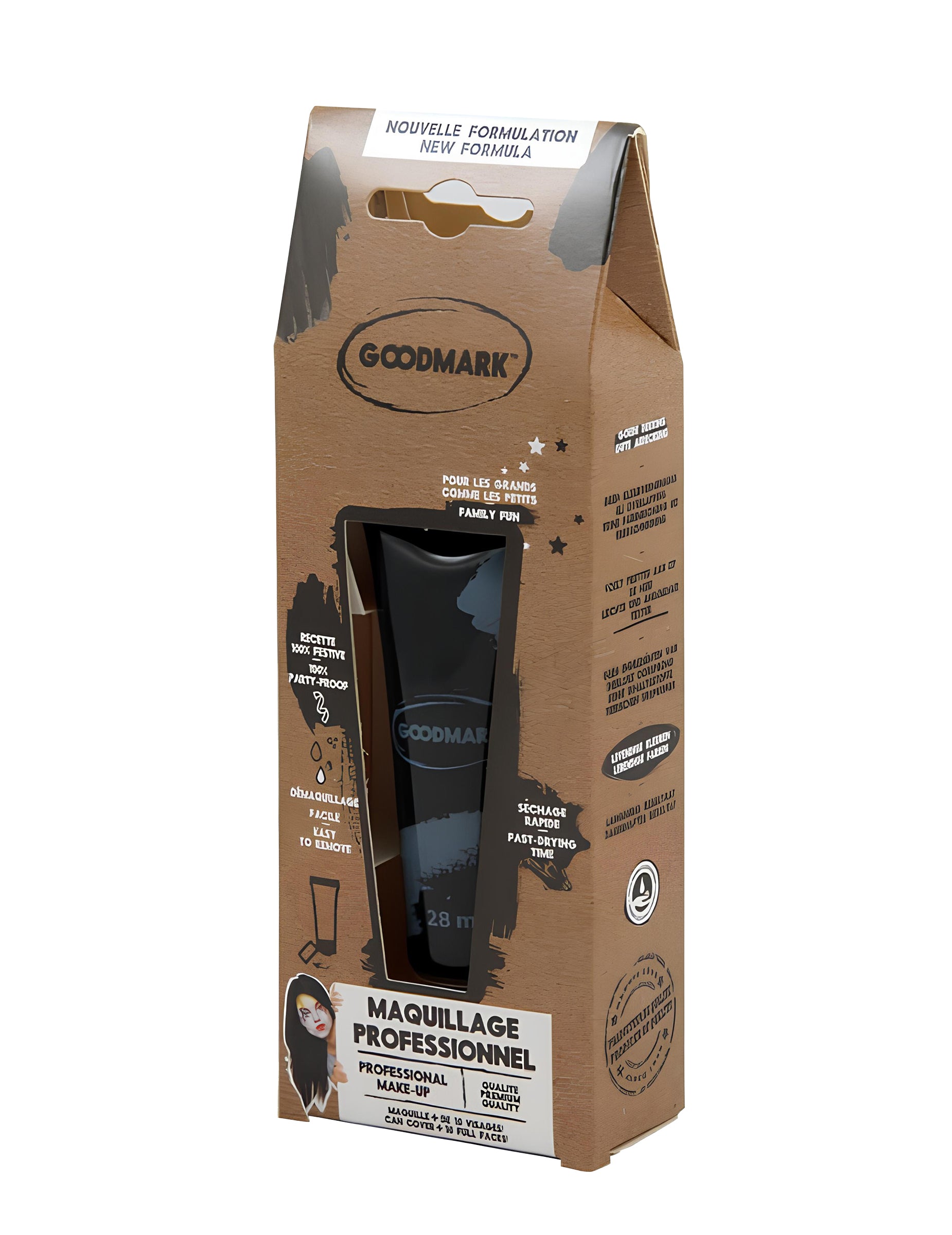 Diese Make-up Creme für Jung und Alt kommt in einer 28 ml Tube, mit der Sie ungefähr 25 Gesichter schminken können. Das schnell eintrocknende Gesichts-Make-up kann hinterher ganz leicht mit etwas Wasser abgewaschen werden. Ein tolles Make-up auf Wasserbasis, mit dem Sie an Karneval oder Halloween all Ihre Schminkideen umsetzen können.