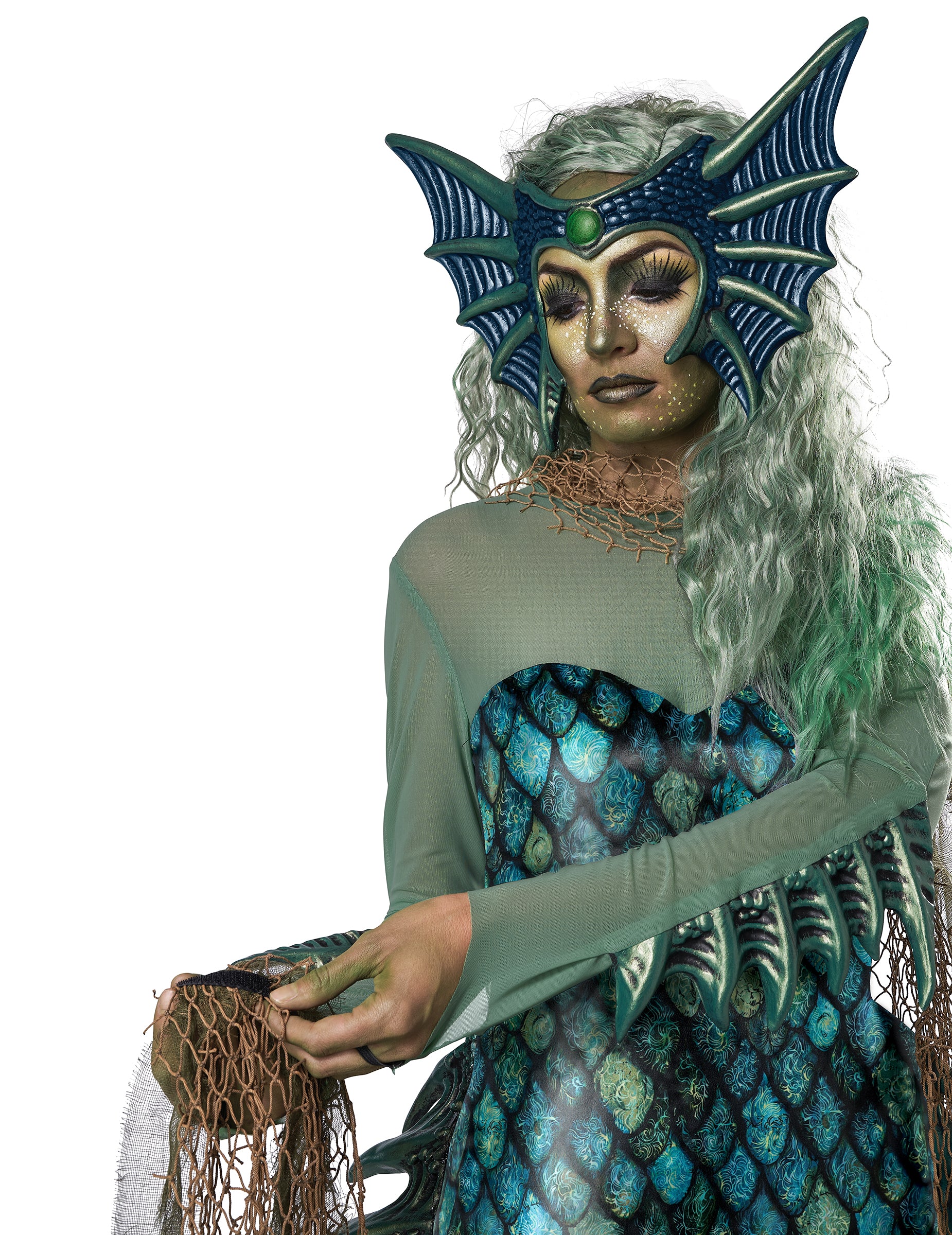 Düstere Meerjungfrau-Damenkostüm für Halloween Meerhexen-Verkleidung blau-grün