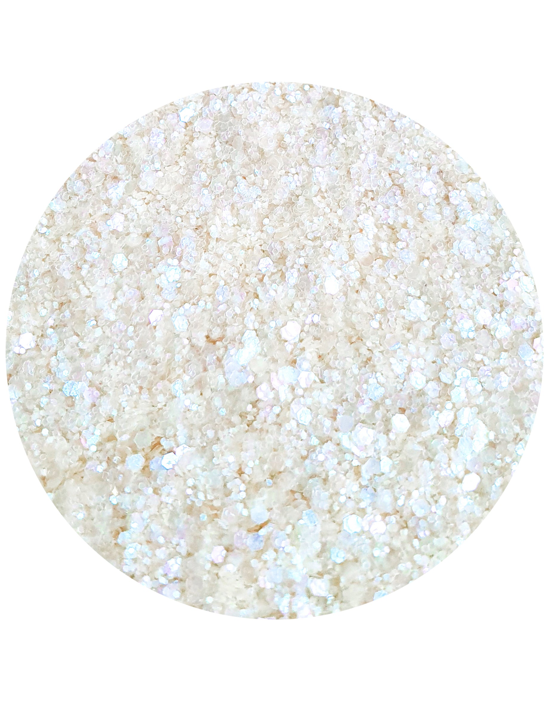Dieses Glas mit biologisch abbaubarem Glitzer "weiße Nacht" von Si si la paillette enthält 5 ml oder ca. 3,5 g Glitter.