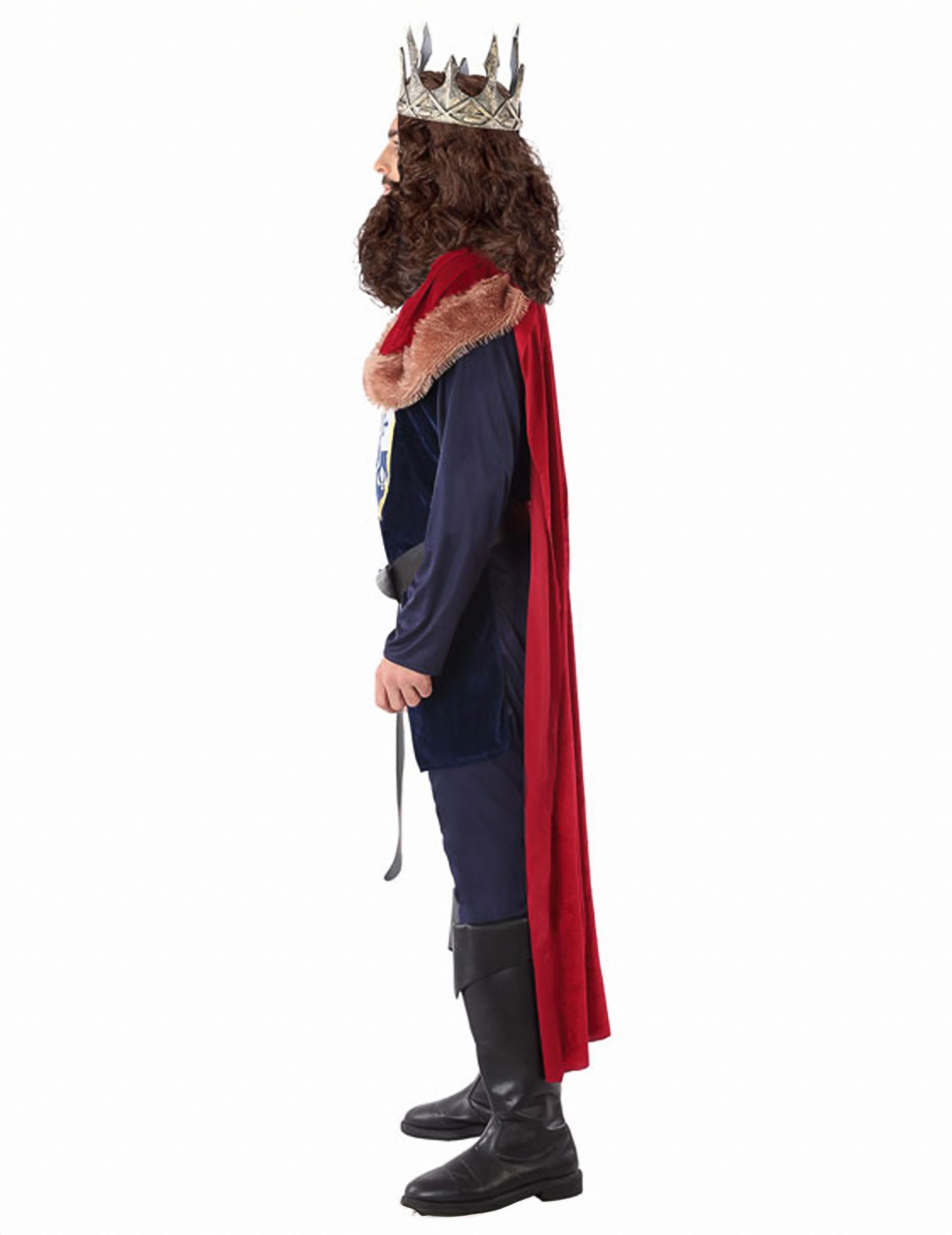 Dieses mittelalterliche Königskostüm für Männer besteht aus einem königlichen Oberteil, einem Gürtel, einem Umhang und einer passenden Hose - perfekt, um einen Herrscher zu verkörpern, der den größten Epen würdig ist.