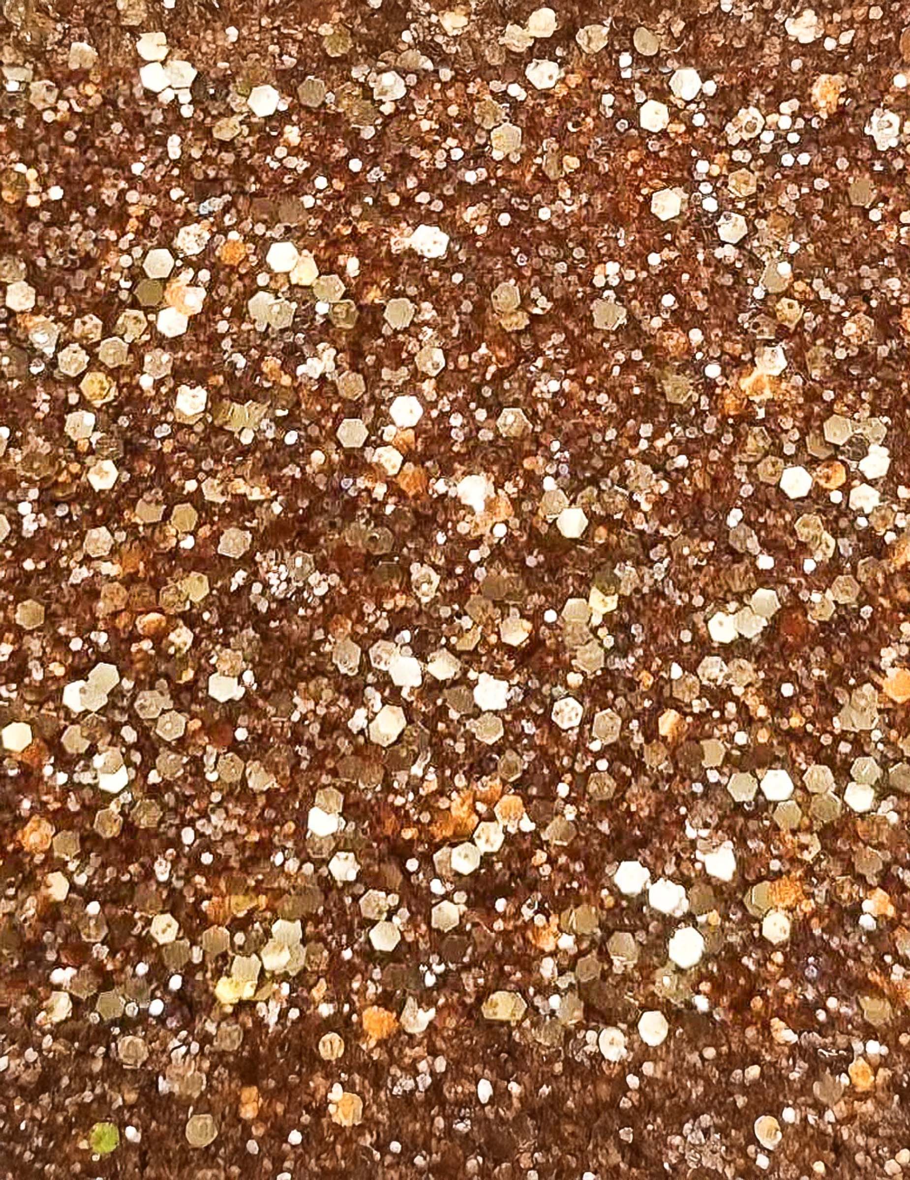 Hergestellt aus pflanzlichen Materialien, vegan und zu 99 % plastikfrei, vereint dieser Glitter Ethik und Glanz in einer einzigartigen Mischung aus Kupfer-, Gold- und Orangetönen. In ultrafeinen und mittleren Partikelgrößen sorgt er für ein leuchtendes, harmonisches Finish.