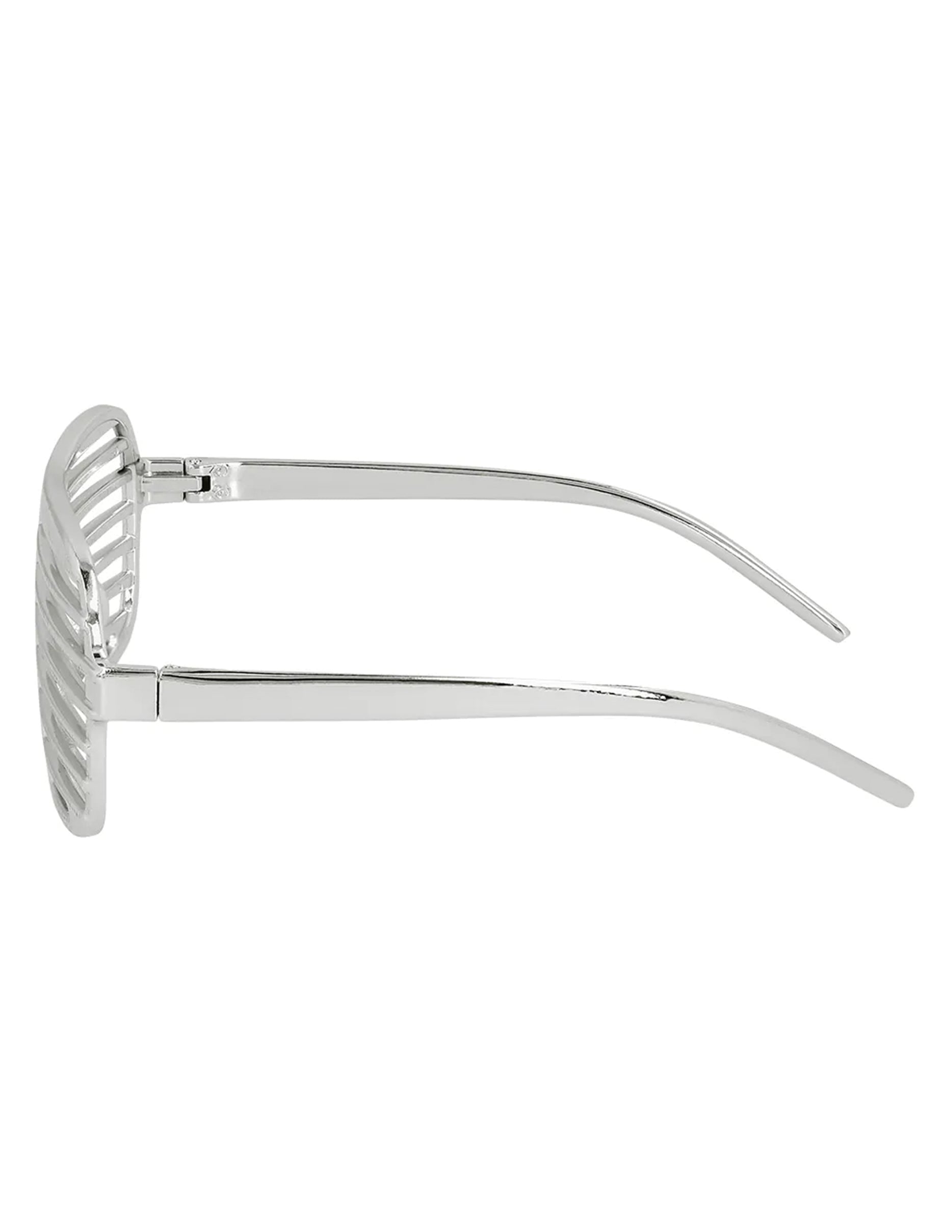 Tieto strieborné pruhované okuliare pre dospelých dokonale doplnia slávnostný alebo retro vzhľad. Ich kovový rám a horizontálne štrbiny pripomínajú ikonické štýly tanečných večierkov a nápaditých kostýmov.