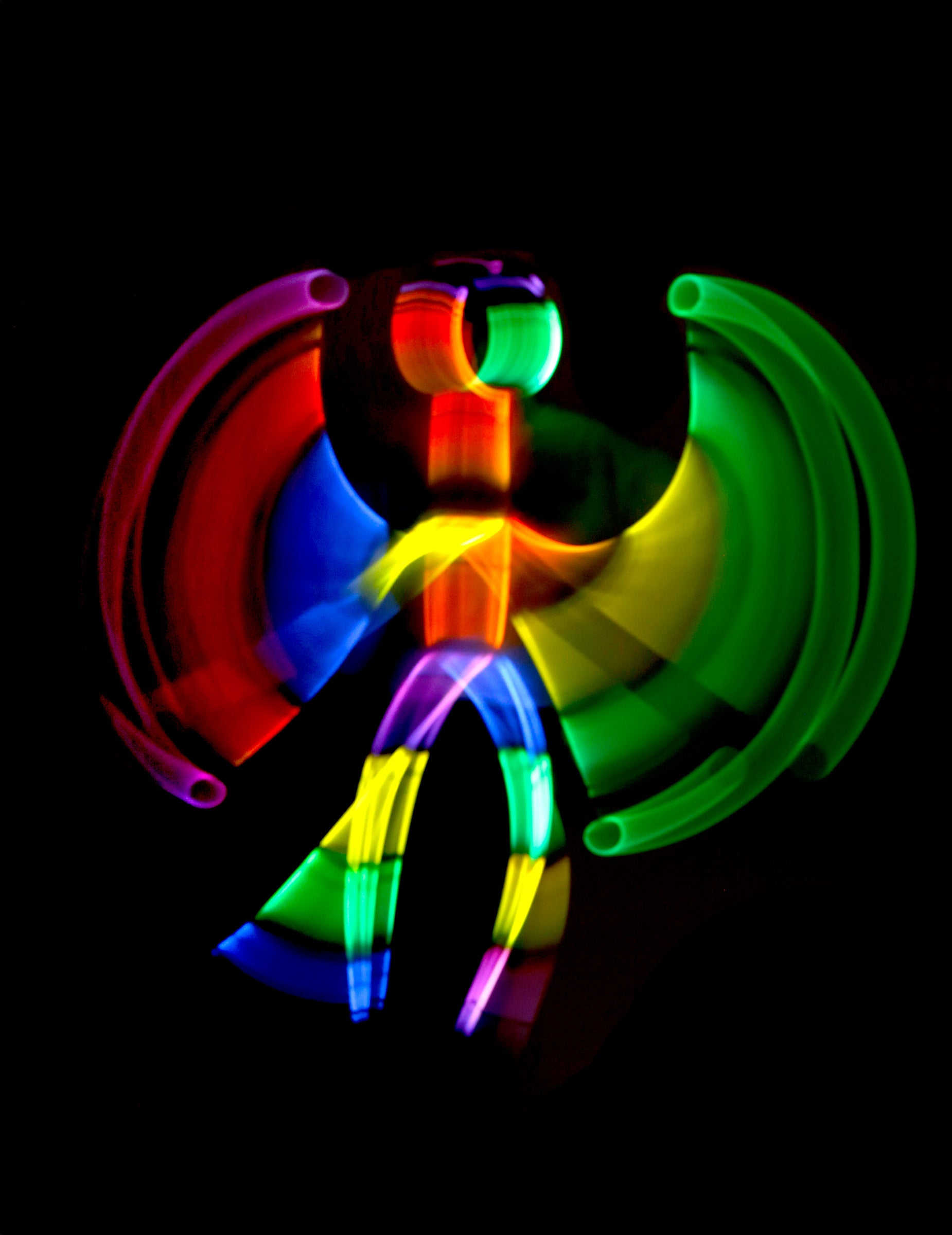 Dieses 47-teilige Set enthält Leuchtstäbe und passende Halterungen, mit denen sich direkt am Körper eine im Dunkeln leuchtende Silhouette gestalten lässt.