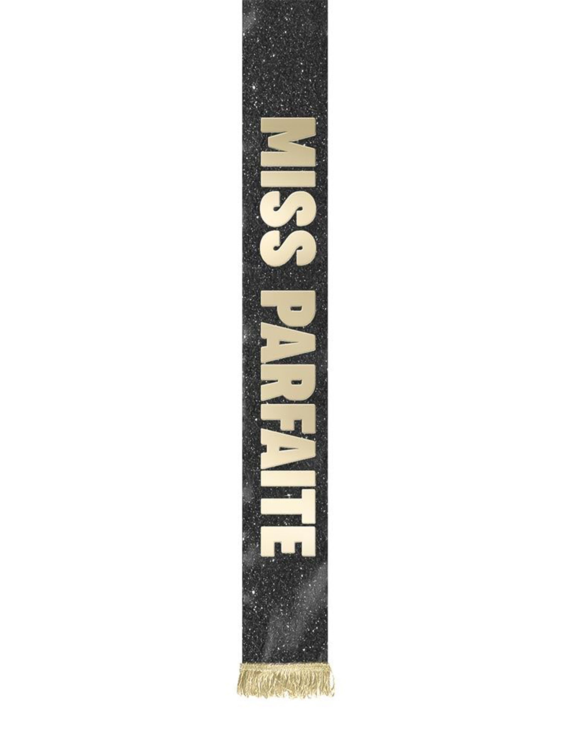 Toto Flitrovaná šatka Miss Perfect zvádzaná trblietavou látkou a rafinovaným vzhľadom s nápisom „Slečna Dokonalá„v zlatej farbe, dokonale zvýraznená po celej dĺžke.“