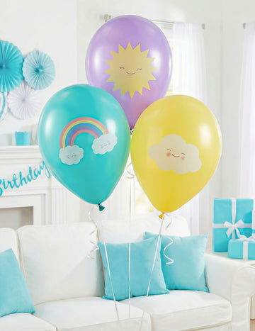 6 Ballons en latex Petit Nuage menthe, violet et jaune 27,5 cm