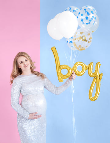 Ballon géant en latex boy or girl confettis roses 1 m pour baby shower