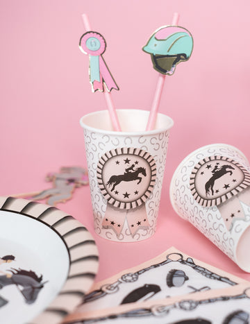 10 gobelets carton équitation 7,8 x 9,7 cm motif fer à cheval