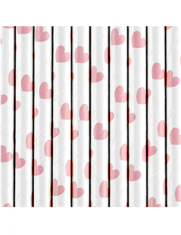 10 pailles en carton blanches cœurs roses 19,5 cm saint valentin