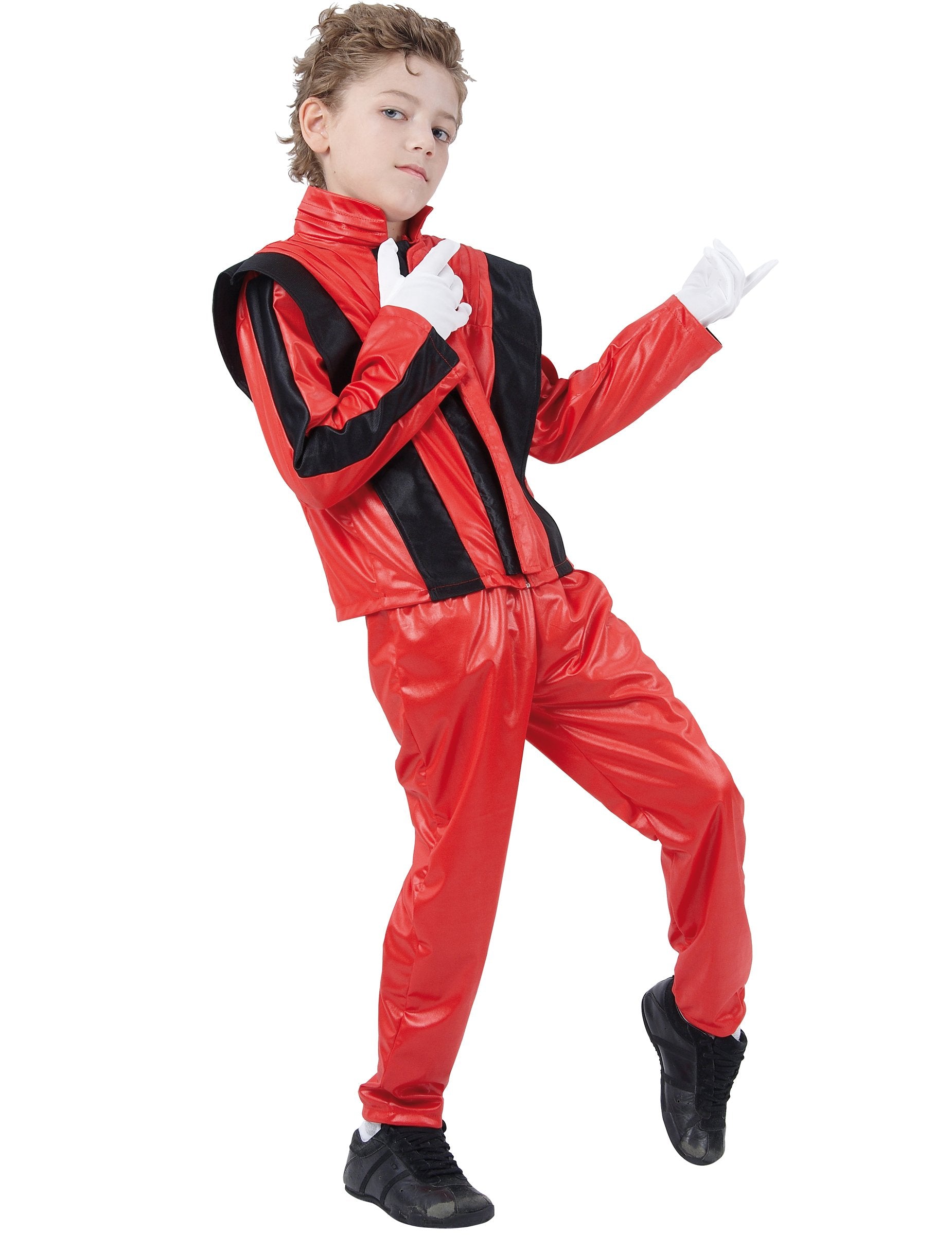 Tento dětský kostým popové hvězdy obsahuje sako a odpovídající kalhoty. Jasně červená bunda, zdobená kontrastními černými pruhy, evokuje ikonický styl největších hudebních legend. S vysokým límcem a výraznými ramenními vycpávkami přináší nádech charisma a elegance. Červené kalhoty, sladěné s bundou, jsou plynulé a pohodlné, ideální pro doprovod nejdivočejších tanečních pohybů. Tento kostým je ideální pro hraní hvězdy během karnevalu, show nebo maškarní párty. Vaše dítě bude připraveno zářit ve světle reflektorů!
