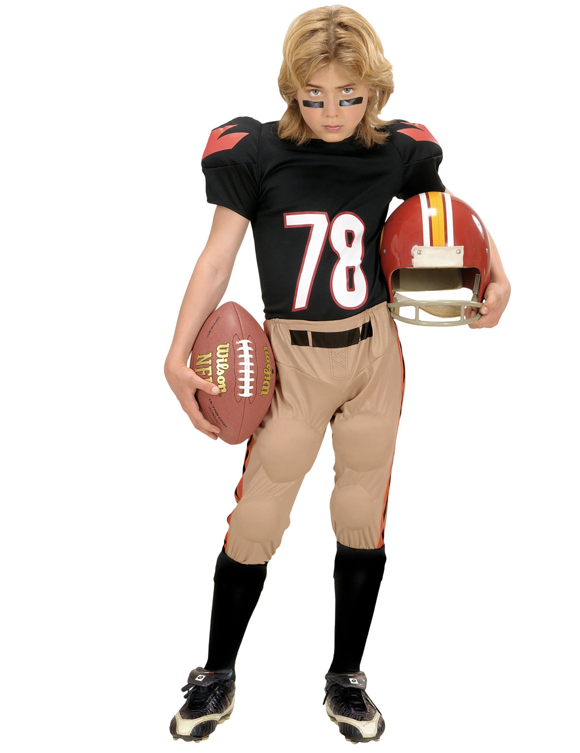 Tento chlapecký kostým amerického fotbalu se skládá z trička a kalhot. Tričko má vycpaná ramena a je elastické, aby se přizpůsobilo tvaru těla vašeho dítěte. Kalhoty, také elastické, ladí a sahají těsně pod kolena (helma, míč, líčení, ponožky a boty nejsou součástí balení). Tento kostým bude ideální na karneval nebo jakoukoli jinou maškarní akci. Copyright Widmann SRL. Copyright Widmann SRL