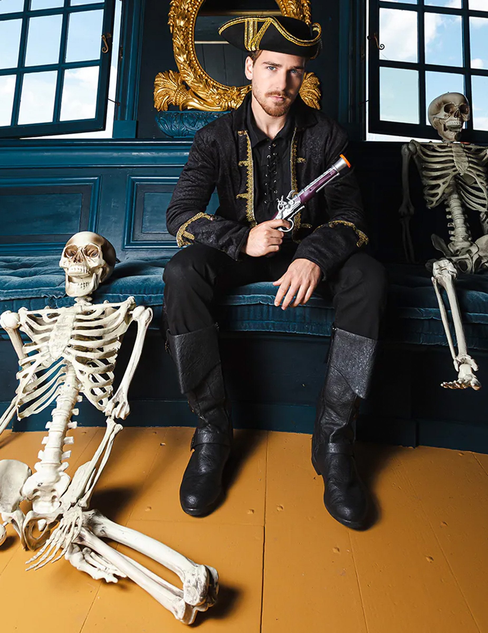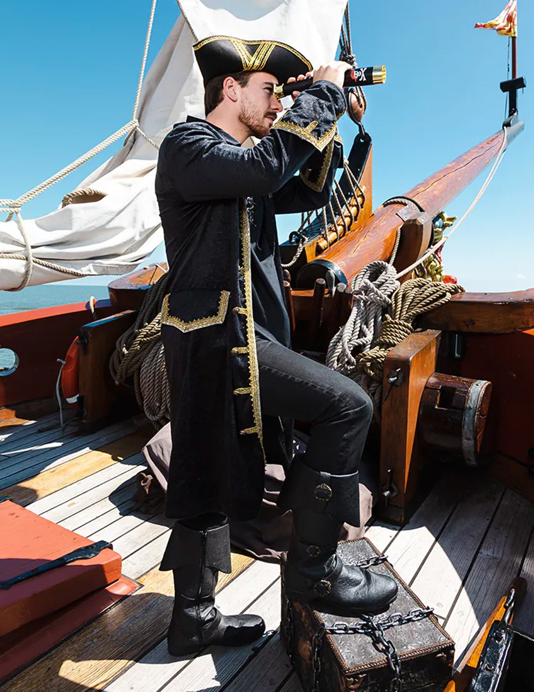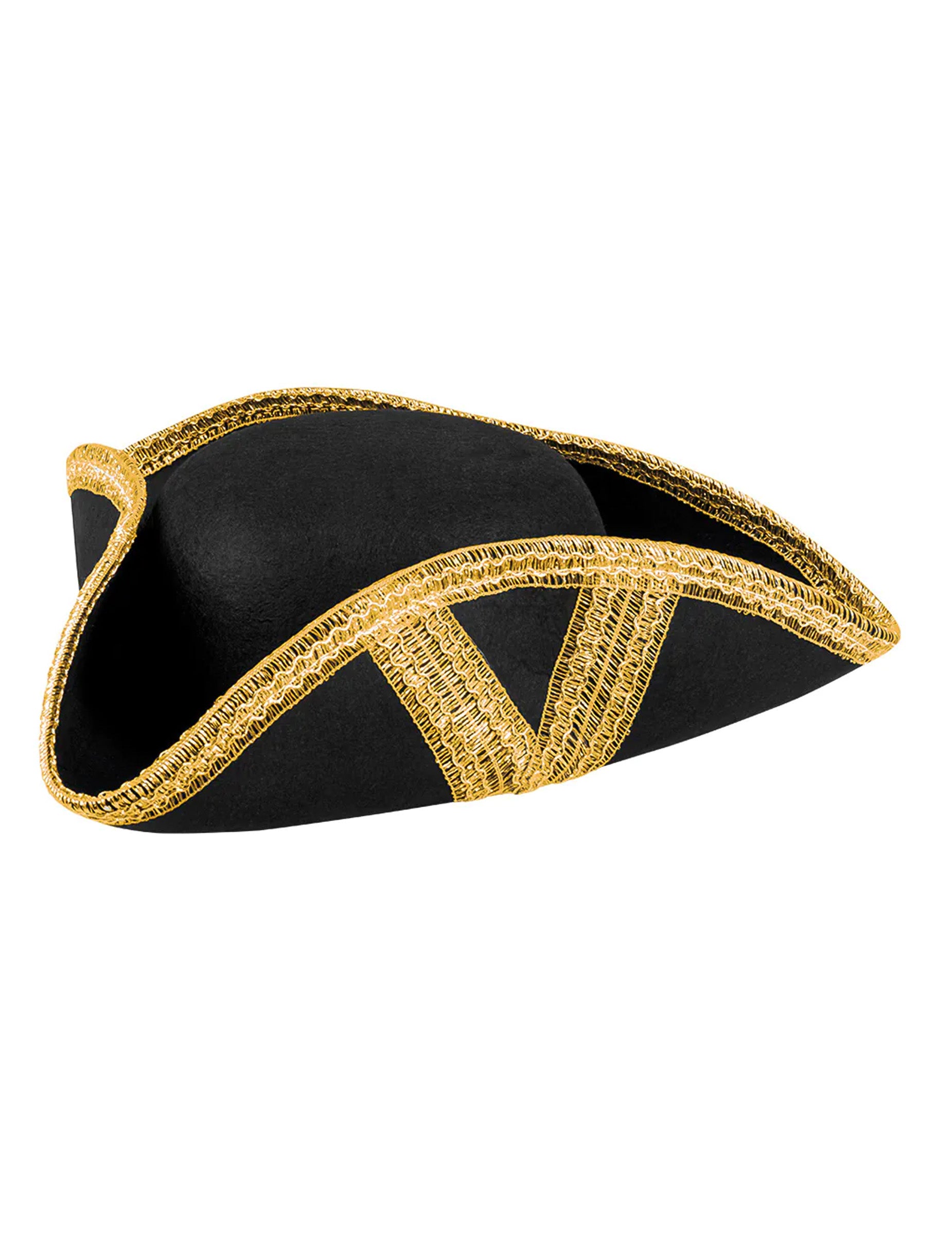 Ce chapeau de pirate pour homme arbore une forme tricorne classique, rehaussée de belles bordures dorées qui lui donnent un style élégant et authentique. Sa finition soignée et son allure imposante en font un complément parfait pour finaliser un costume de capitaine ou de flibustier. Idéal pour le Carnaval, une soirée à thème ou un événement déguisé, ce chapeau apportera la touche finale qui fera toute la différence.