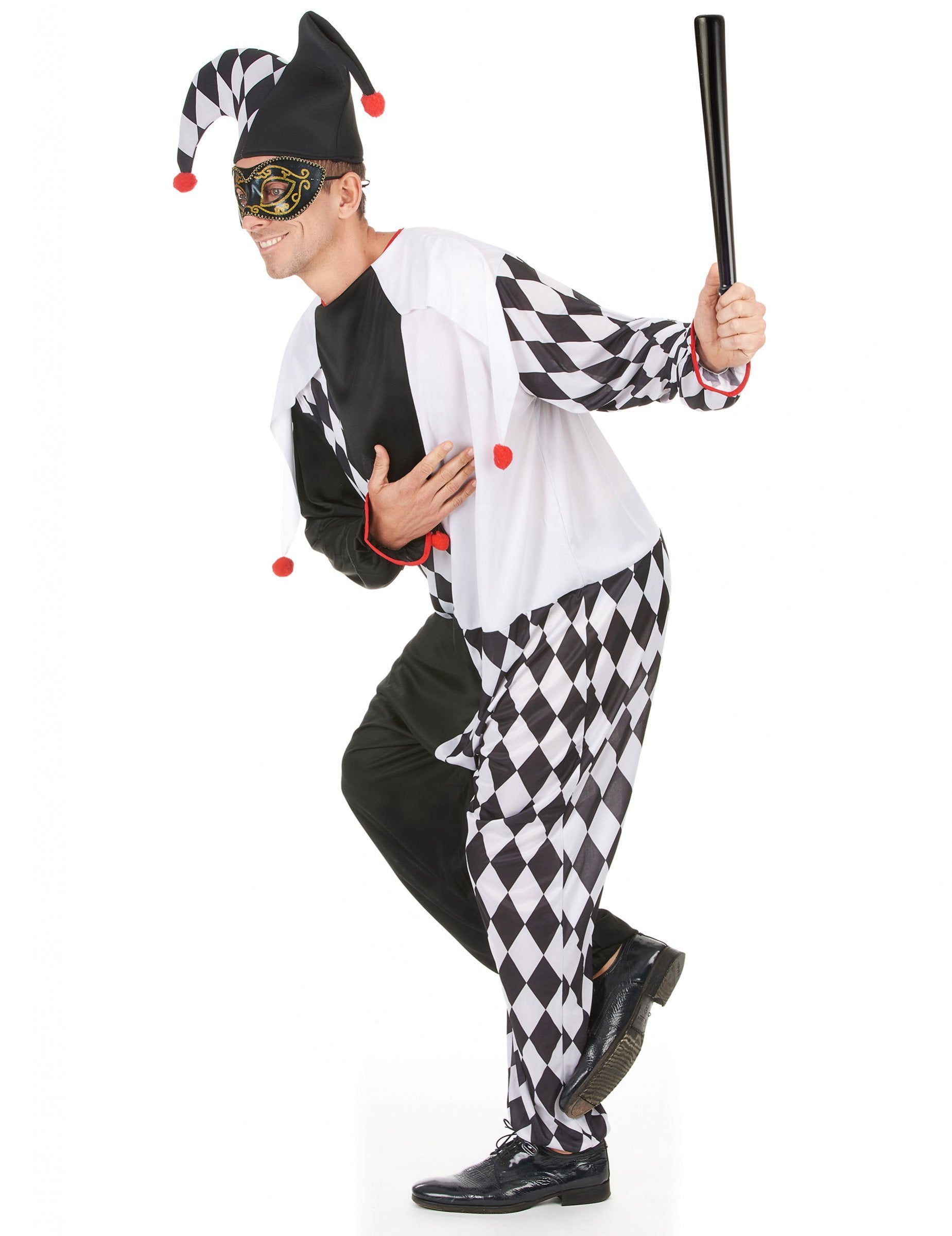 Tento pánský kostým šaška obsahuje klobouk a overal. Klobouk je autentickou šaškovskou pokrývkou hlavy, doplněnou dvěma červenými bambulkami a gumičkou, která jej bezpečně drží na místě. Je vycpaný pro objem. Černobílý overal je zdoben diamanty, což je vzor typický pro šašky a další klauny (kyj a boty nejsou součástí balení). Univerzální velikost, dodáváno v ochranném balení. Tento kostým šaška je ideální pro vaše večírky ve středověkém stylu, ale pozor, budete muset všechny bavit celý večer!