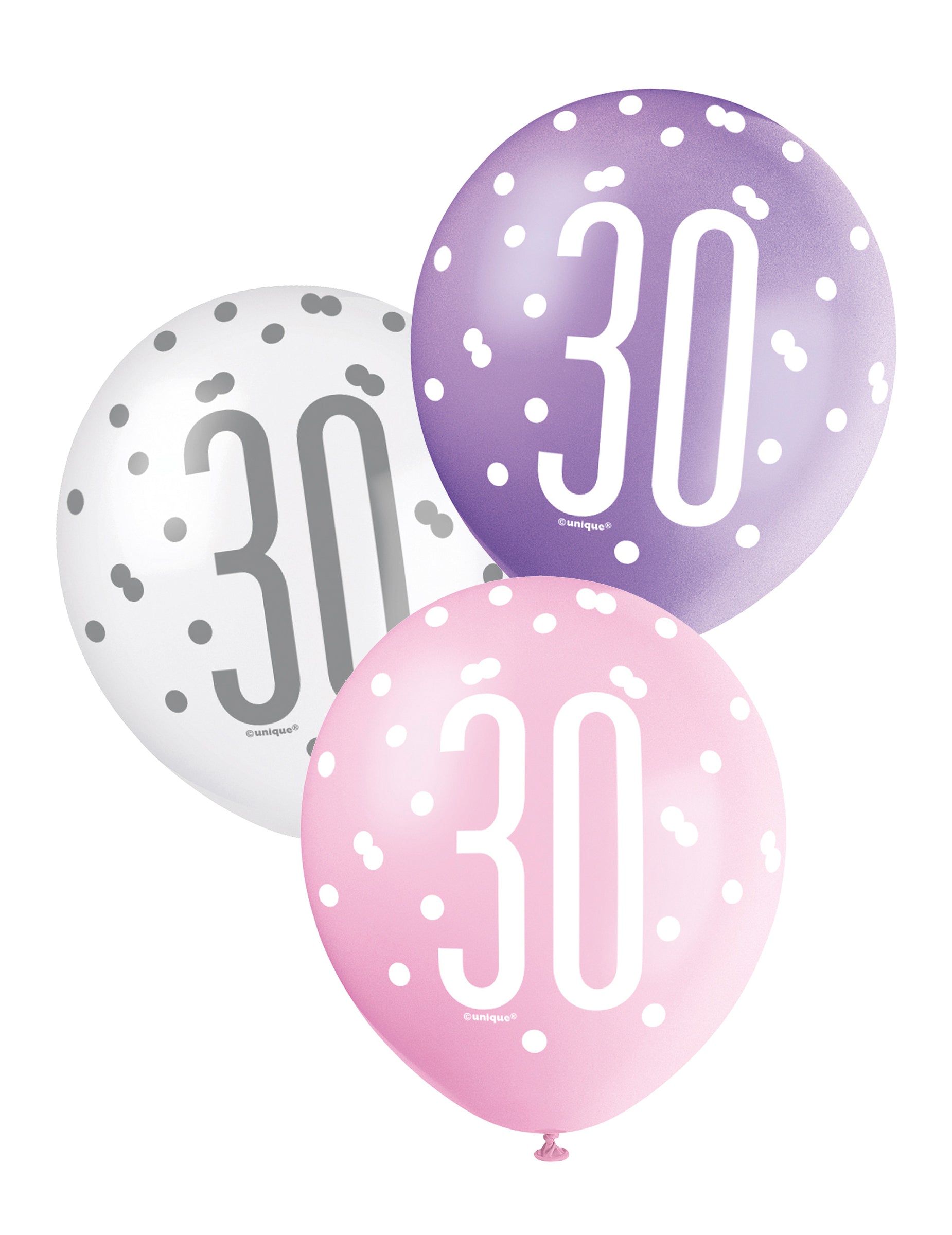 6 růžových, fialových a bílých balónů 30 let