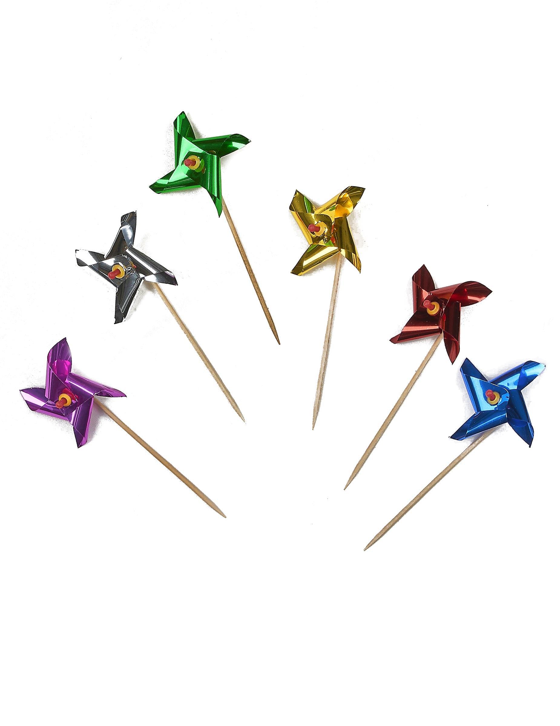 Tato šarže se skládá z 12 vícebarevných kovových papírových wollytopových tyčinek. Tyto mini větrných mlýny jsou vysoké přibližně 8 cm. Během slavnostní akce budou perfektní pro dekoraci stolu.