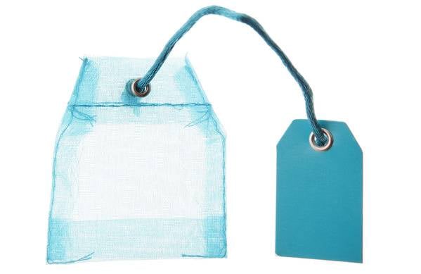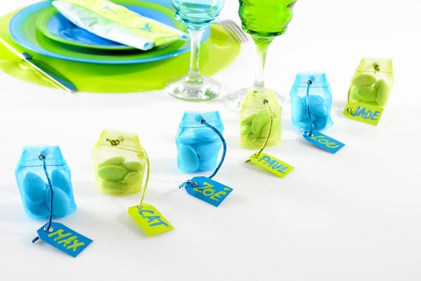 Objevte tuto sadu 4 malých sáčků originálního tvaru čajového sáčku. Tyto doplňky vyrobené z tyrkysového organzového materiálu o rozměrech 5 x 6 cm pozvednou prezentaci vašich mandlí v cukru při vašich velkých slavnostních událostech.
