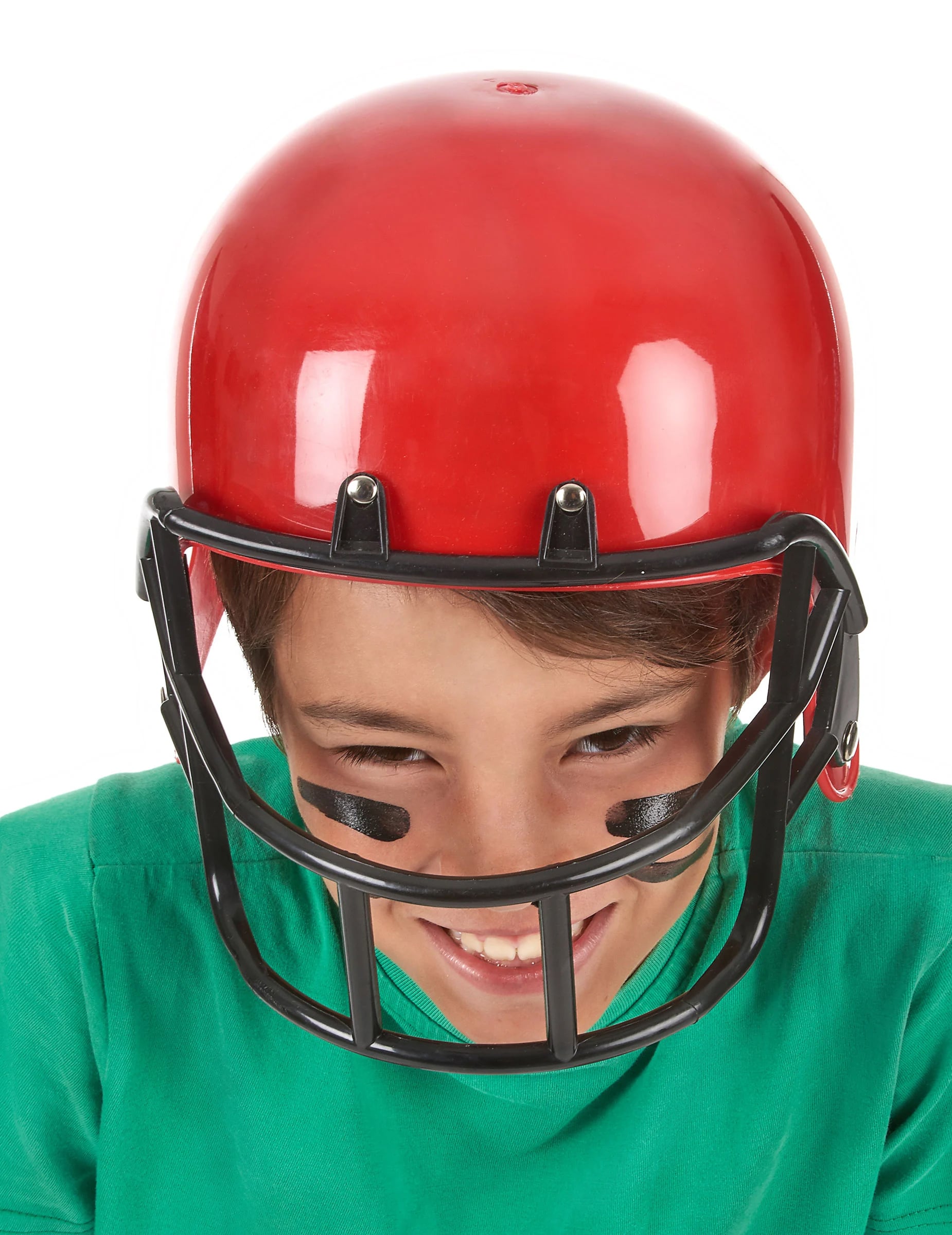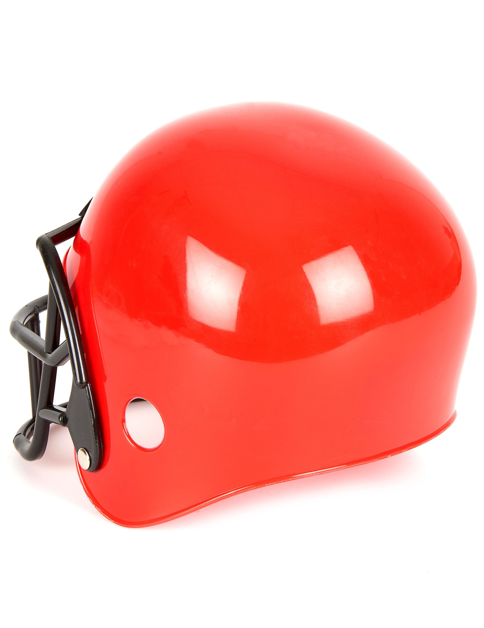Toto Helma na americký fotbal pro děti je vyrobena z pevného plastu. Je červené barvy, s černým plastovým rámem v úrovni obličeje.