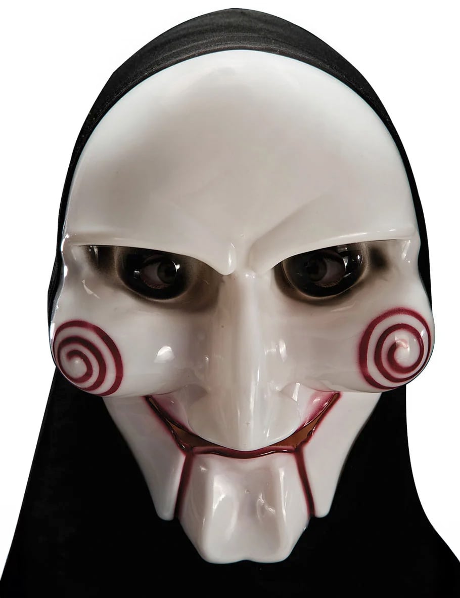 Tato maska psychopatického vraha je z bílého plastu. Zobrazuje děsivou tvář s červenými spirálami vytištěnými na tvářích.