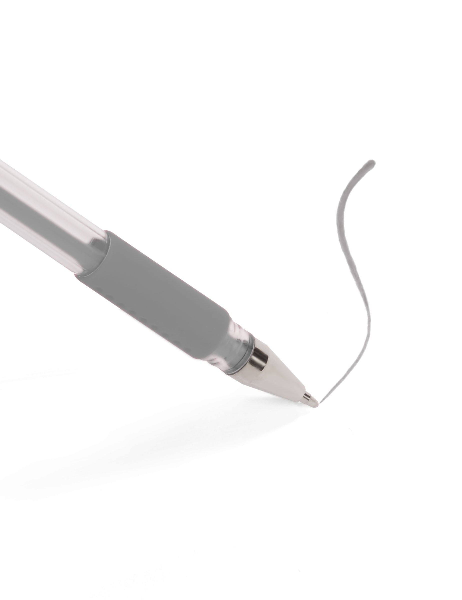 Dodejte své papírové výzdobě nádech třpytu s tímto perem s gelovým inkoustem ve stříbrném odstínu. Toto plastové příslušenství měří přibližně 15 cm na délku.