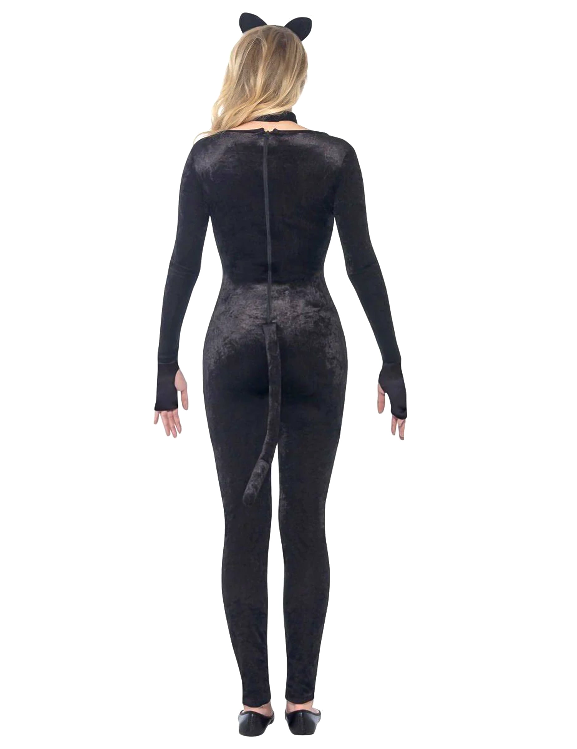 Tento kočičí kostým pro teenagery se skládá z overalu, ocasu, čelenky a náhrdelníku (boty nejsou součástí balení). Černý overal z imitace sametu se zapíná na zip vzadu. Nosí se těsně u těla. Ocas měří přibližně 40... cm a zapíná se na suchý zip. Čelenka má malé uši. Náhrdelník ladí s overalem a zapíná se na suchý zip. Proměňte se v kočku s tímto kostýmem.