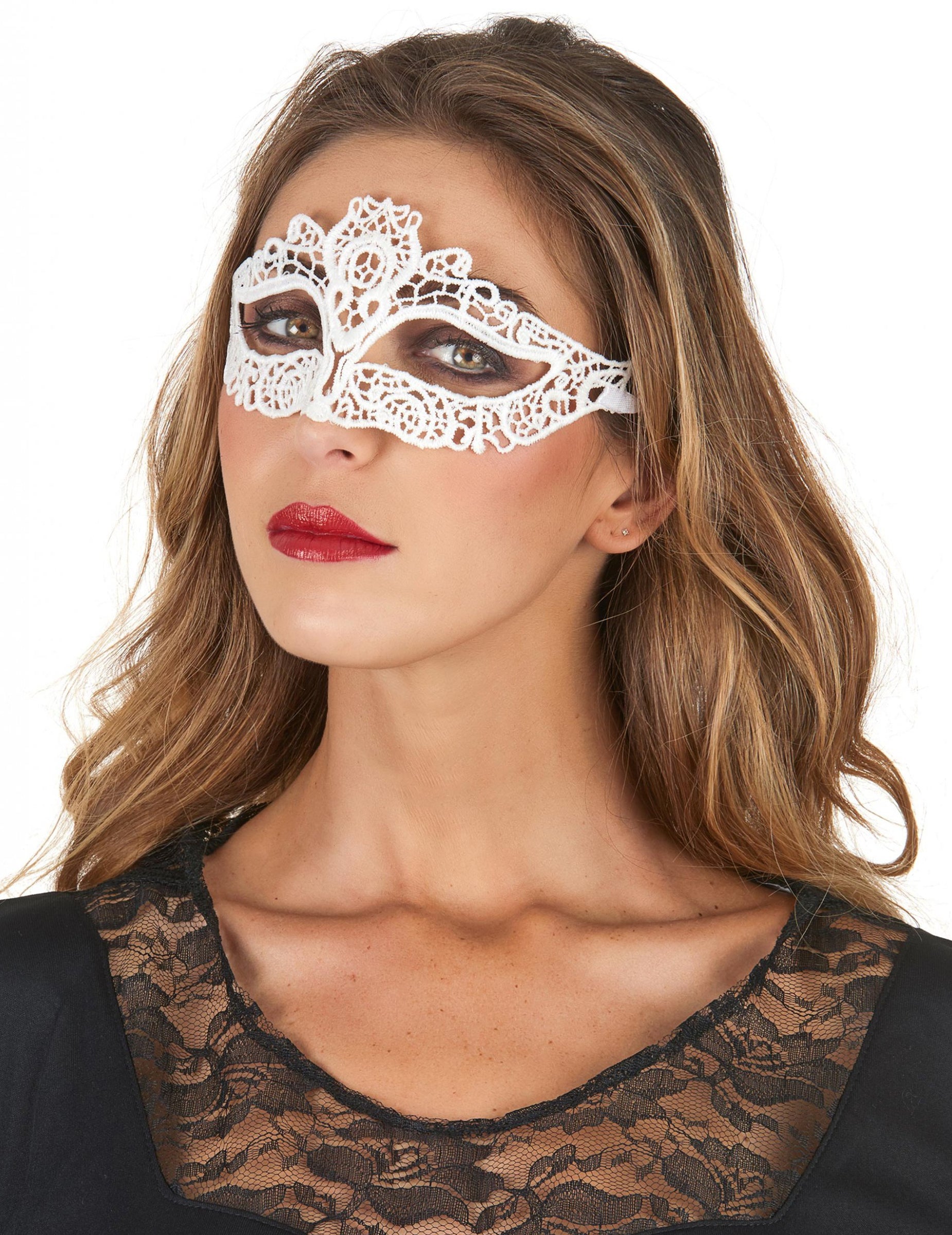 Tato maska pro dospělé je vyrobena z bílé krajky. Je extrémně jemná, dokonale kopíruje kontury obličeje a zdůrazňuje oči. Je vyrobena z pevné krajky a zavazuje se v zadní části hlavy dvěma bílými stuhami. Doplňte svůj vzhled touto elegantní benátskou maskou!