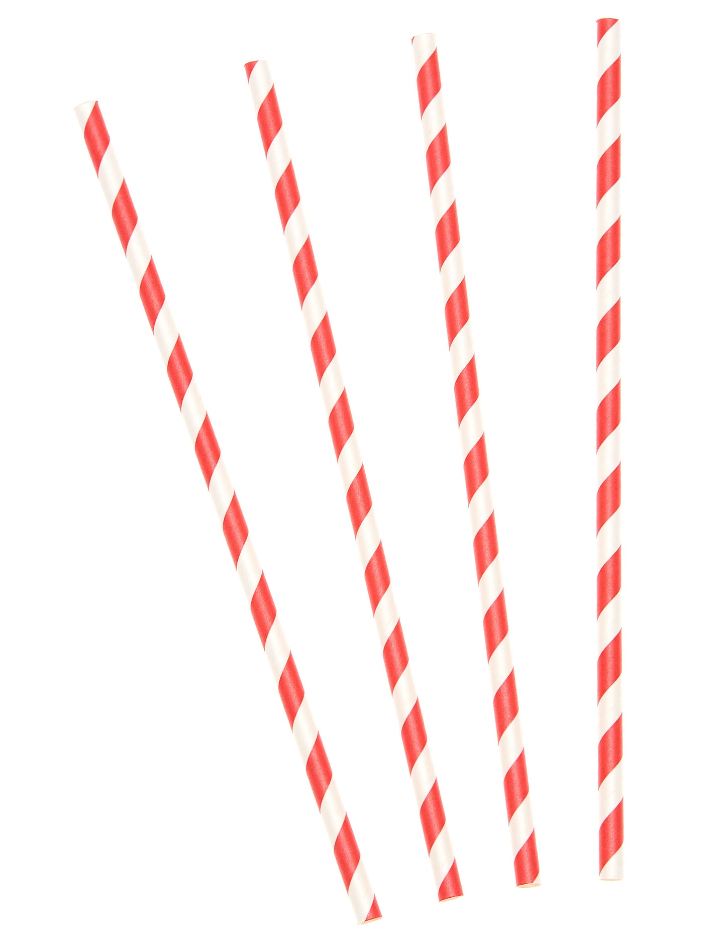10 červenobílých pruhovaných kartonových brček 19,5 cm