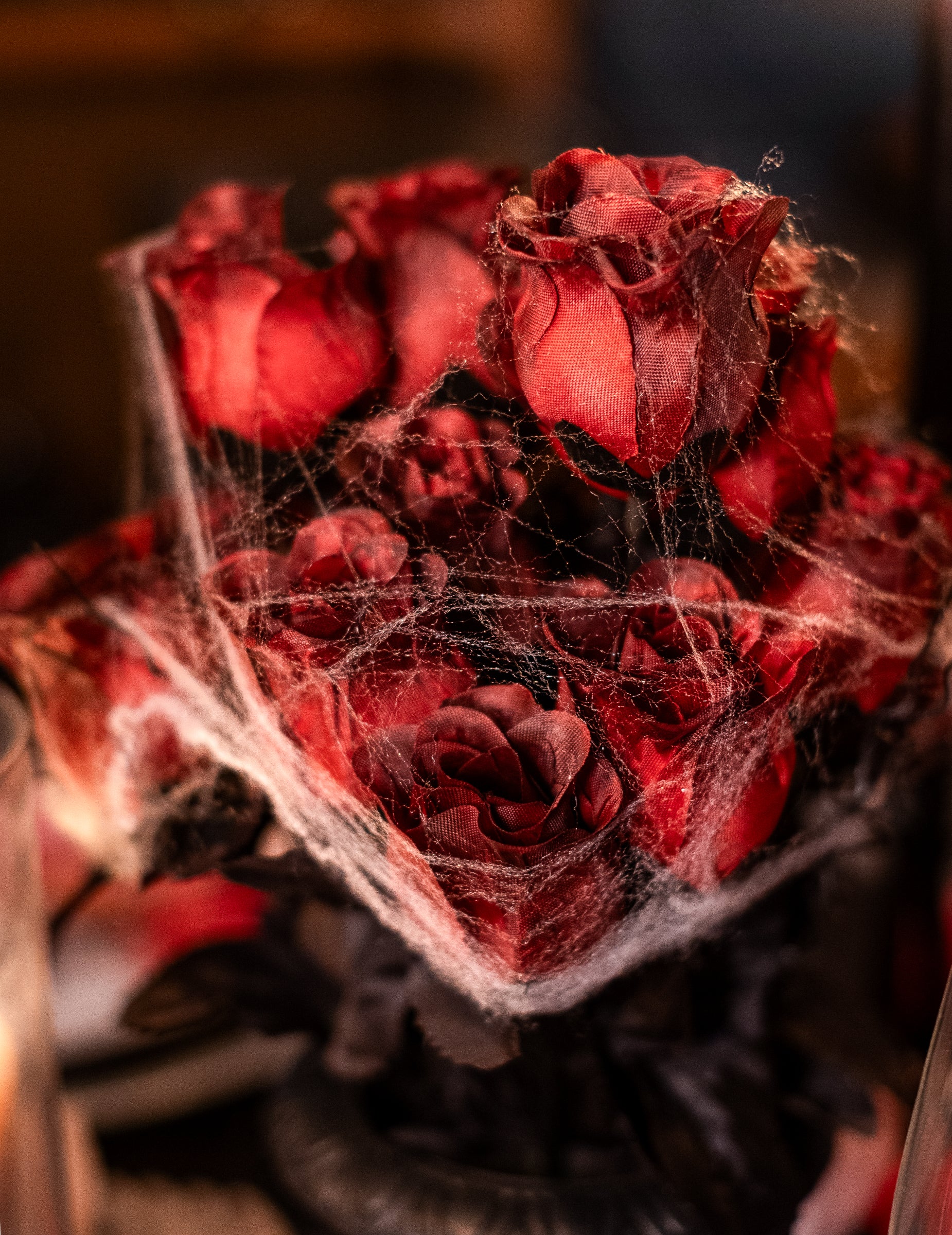 Červená růžová kytice pavouka plátno 35 cm Halloween