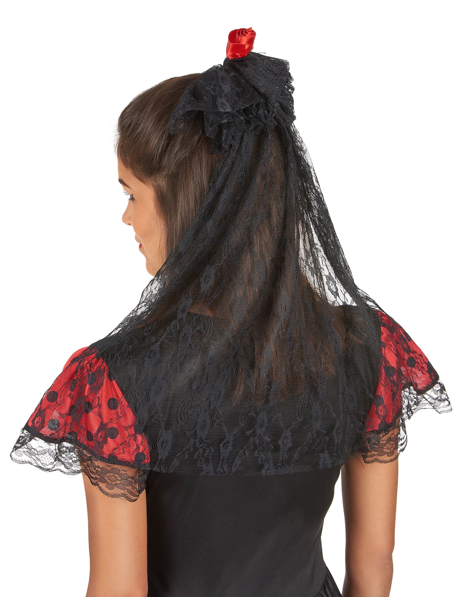 Závoj s červenou španělskou růží pro ženy