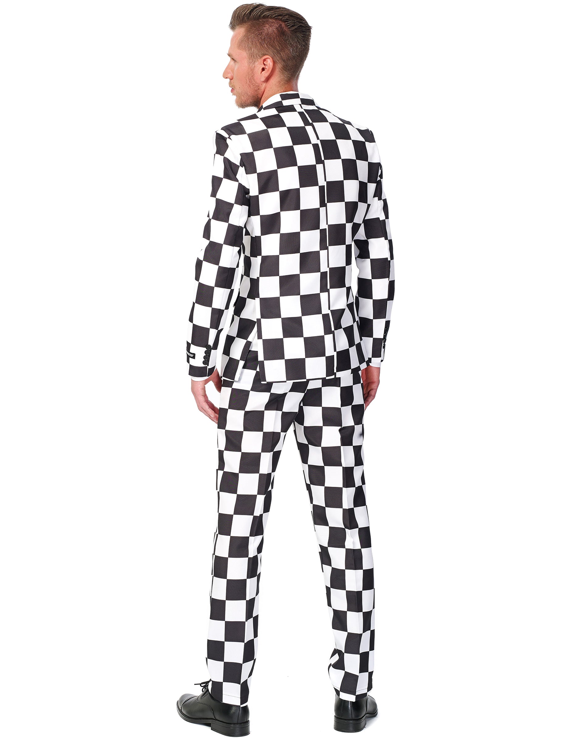 Tento černobílý kostým značky Suitmeister™ se skládá ze saka, kravaty a kalhot (košile a boty nejsou součástí balení). Celý kostým je vyroben z kvalitní látky s černo-bílým kostkovaným vzorem. Sako se zapíná vpředu na 2 knoflíky. Je doplněno kravatou, kterou si uvážete kolem krku.