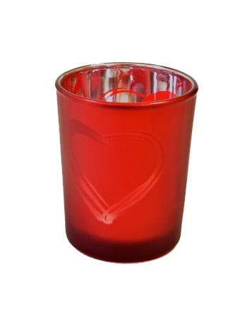 Červený matný skleněný svícen srdce 7 x 5,5 cm romantická dekorace