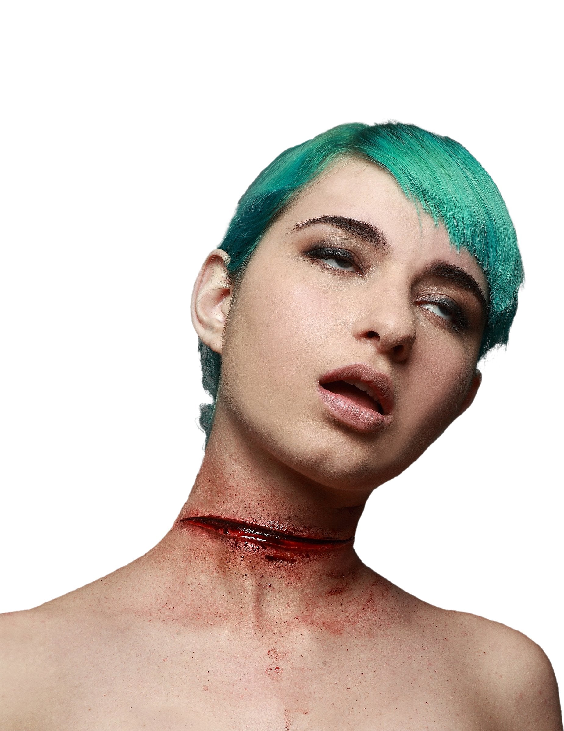 Tato falešná rána je určena pro dospělé a měří přibližně 16 x 3 cm. Vyrobeno z měkkého latexu, jeho překvapivé detaily nabízejí ohromující realismus! Rána vytváří iluzi hlubokého řezu kvůli šňůrce, která byla kolem krku příliš utažená! Pro neuvěřitelný výsledek nemůže být nic jednoduššího: naneste lepidlo nebo gumu na make-up (není součástí balení) na falešnou ránu a přiložte ji na krk! Pro ještě přirozenější efekt nalíčte kontury béžovými a červenými krémovými očními stíny! Utáhl váš milý náhrdelník, který vám právě dal, příliš pevně? Najděte ho na vaší halloweenské párty a nechte ho vidět všechny barvy!