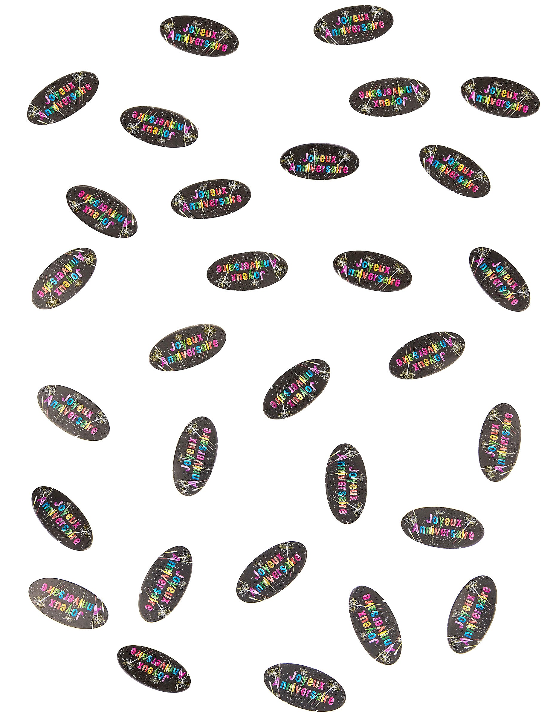 Konfety na stůl k 80. narozeninám jsou seskupeny v sáčku. Tyto kartonové konfety jsou černé barvy a mají potisky ohňostrojů. Na přední i zadní straně mají nápis „Happy Birthday“. Mají rozměr 4 x 2. cm. Tyto konfety na narozeninový stůl se budou perfektně hodit k výzdobě narozeninové oslavy.