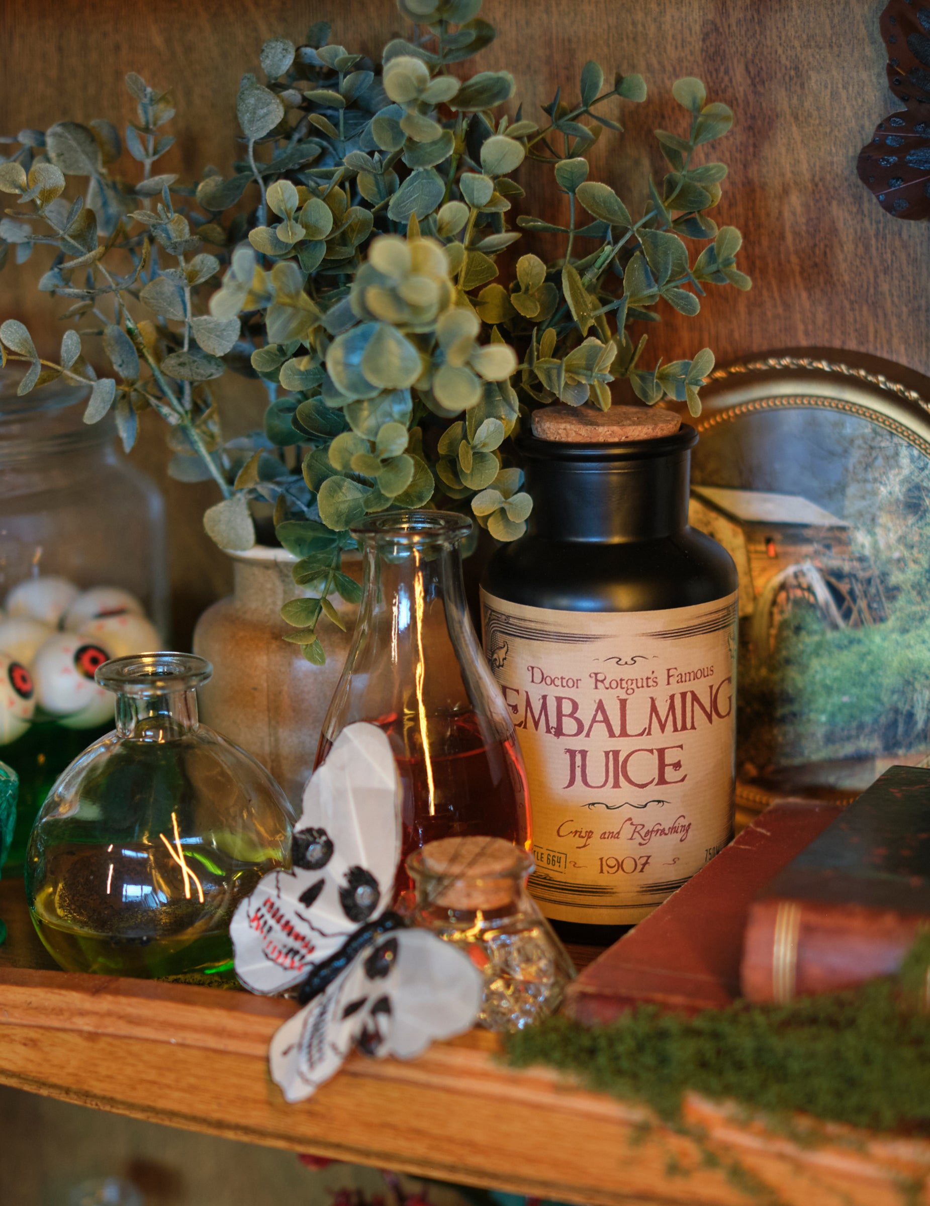 Tato sada obsahuje 8 samolepek na lahve. Jejich rozměry jsou přibližně 12,5 x 10,2. cm. Existuje 8 různých designů, které jsou rozmístěny náhodně (stejný štítek můžete mít dvakrát): tekutý fantom, jed na krysy, červená krev, pavoučí jed... Tyto samolepky se perfektně hodí k tomu, abyste si během halloweenské noci vyzdobili stůl do nejmenších detailů.