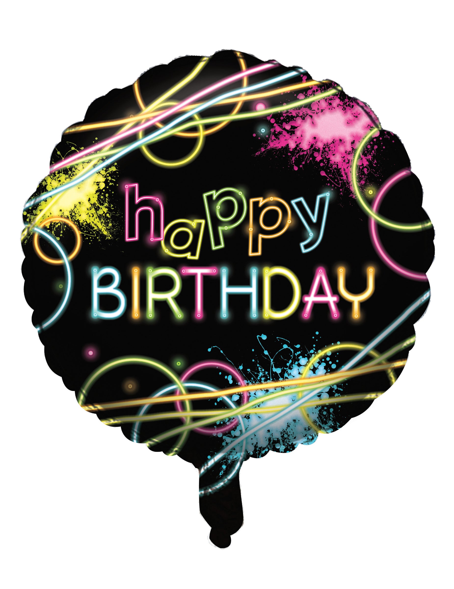 Tento narozeninový míč je vyroben z hliníku. Měří přibližně 45 cm v průměru, jakmile se nafoukne vzduchem nebo heliem, v závislosti na požadovaném použití. Hlavně černá, má výtisky na vícebarevné a zářivkové tóny. Ve středu se také objeví zmínka „Všechno nejlepší k narozeninám“. S tímto barevným balónem bude vaše narozeninová dekorace na téma fluorescenční/fosfo nejkrásnějším efektem!