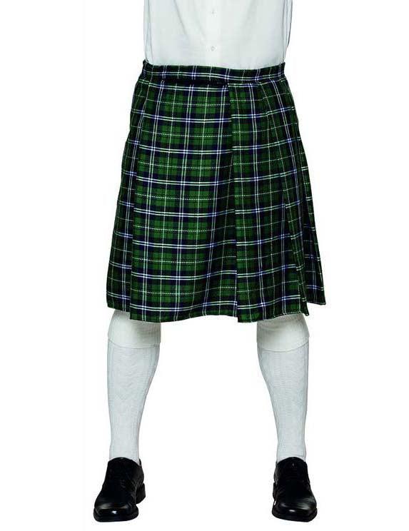 Tato zelená skotská kilt je pro muže (vysoké, bílé ponožky a boty nejsou zahrnuty). Tento skotský KIIT je pestrý s zelenou a bílou. Má pás černé poškrábání ve velikosti. Sukně měří přibližně 57 cm na délku. Tento kilt je ideální pro dokončení ecadského kostýmu během maskovaných večerů nebo pro karneval.