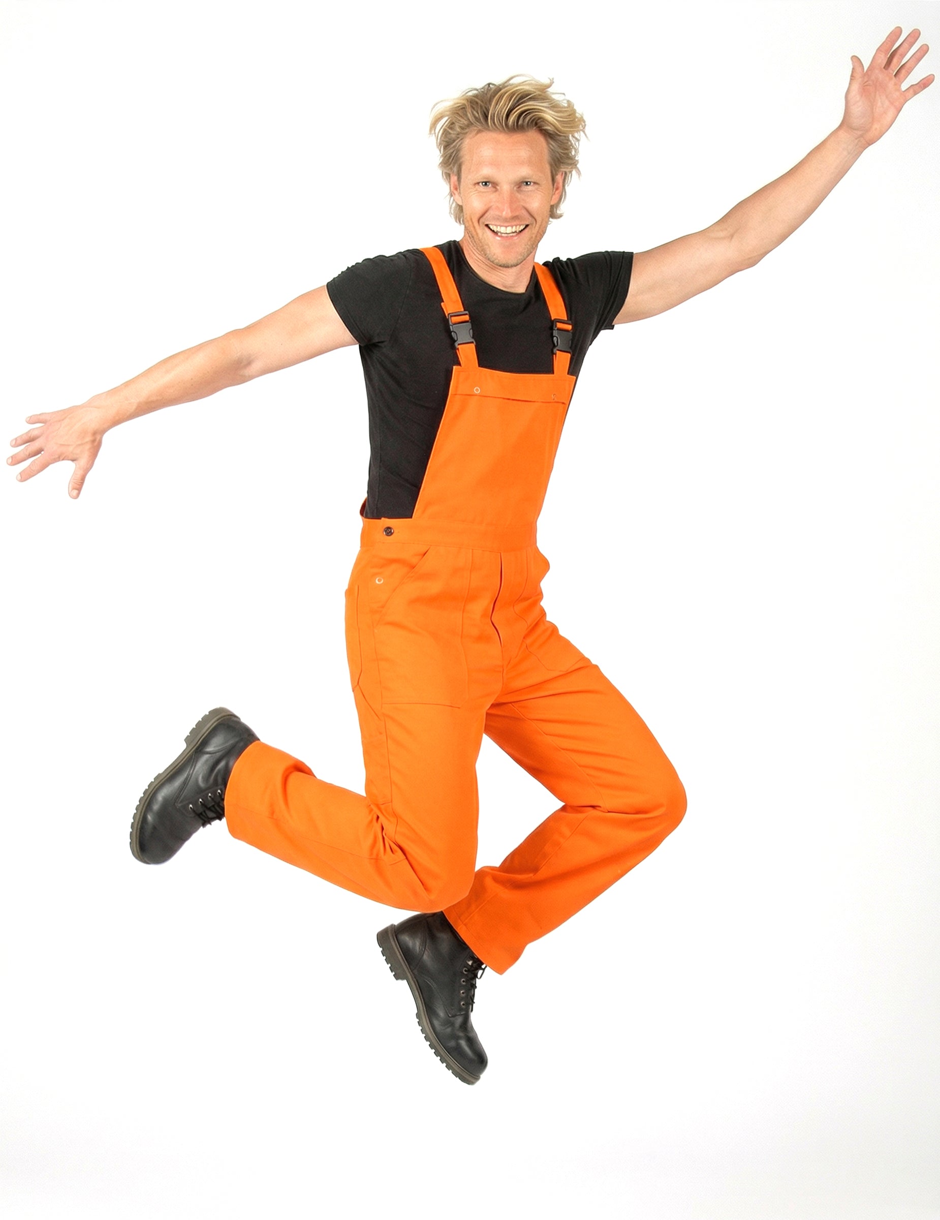 Toto kostým pro dospělé se skládá z a neonově oranžový overal kdo vlastní 2 nastavitelné popruhy pro větší pohodlí.