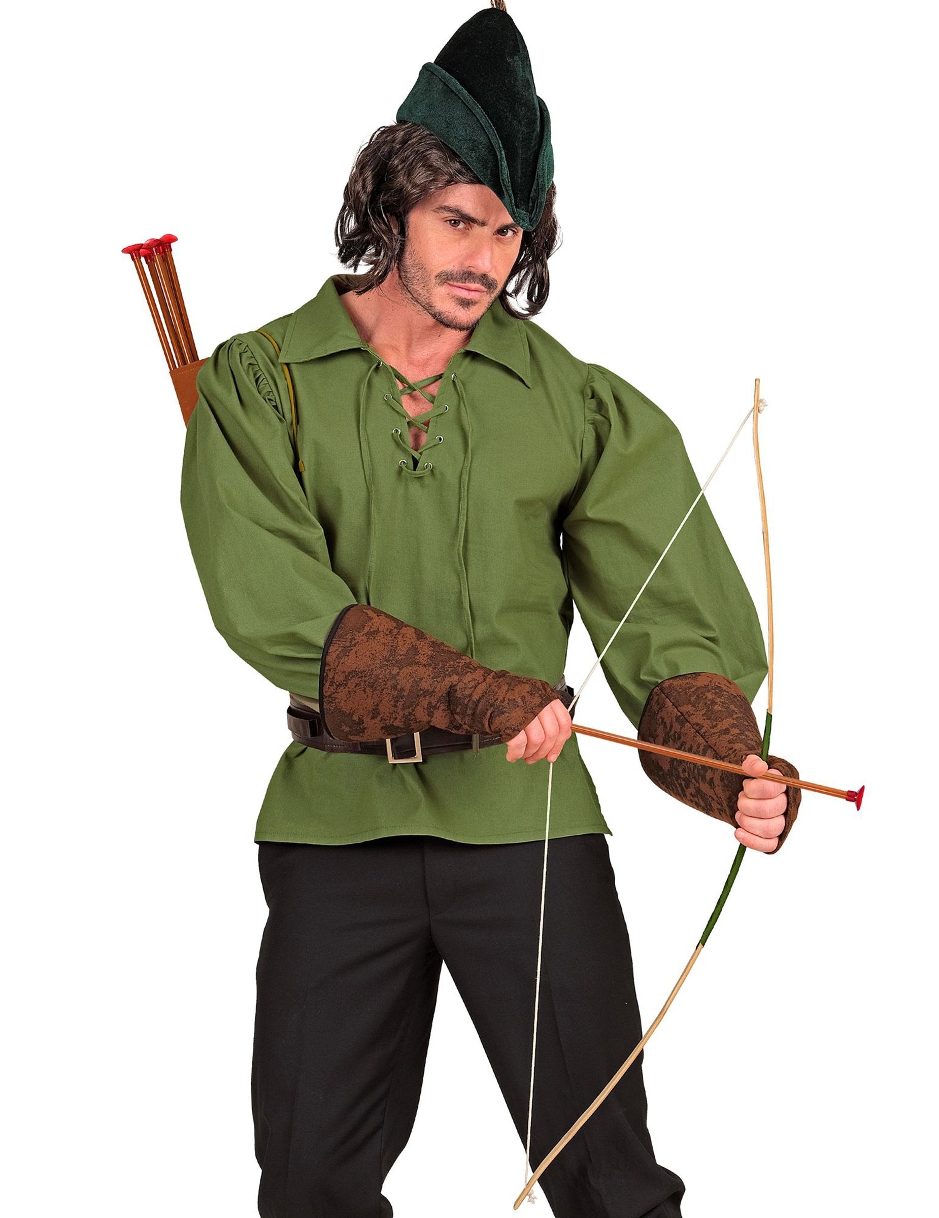 Tato sada pro lukostřelbu obsahuje luk s toulcem a tři šípy. Světlý luk s imitací dřeva měří přibližně 103 cm dlouhý a uprostřed je potažen khaki zelenou látkou pro lepší úchop. Toulec je vyroben z hnědé látky a má popruh pro nošení na rameni. Tři plastové šípy mají na konci červenou přísavku pro bezpečnou střelbu. Tato sada bude ideálním doplňkem vašeho lukostřeleckého kostýmu na karnevalu nebo na maškarní večírek! Copyright Widmann SRL