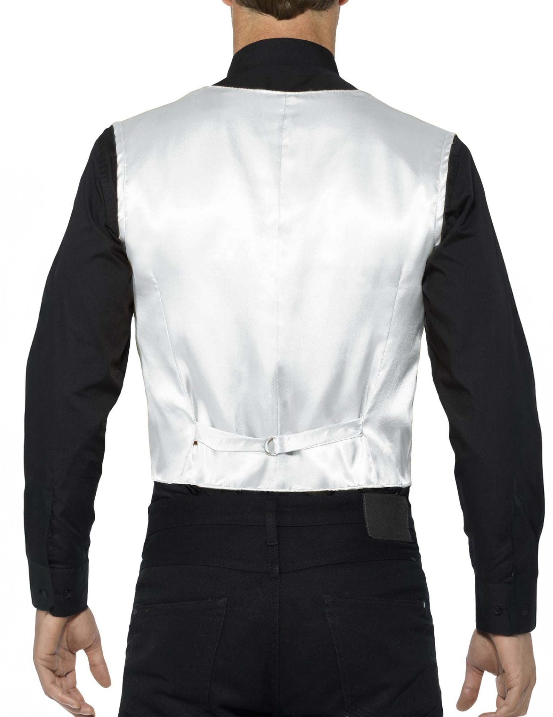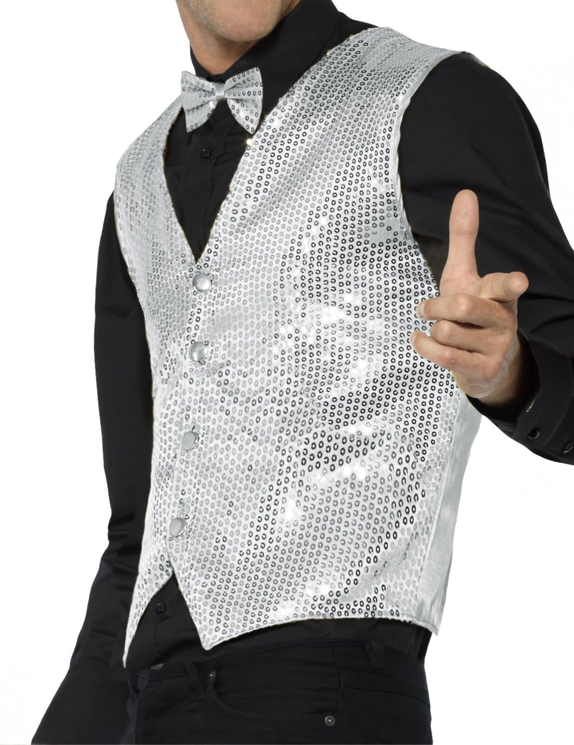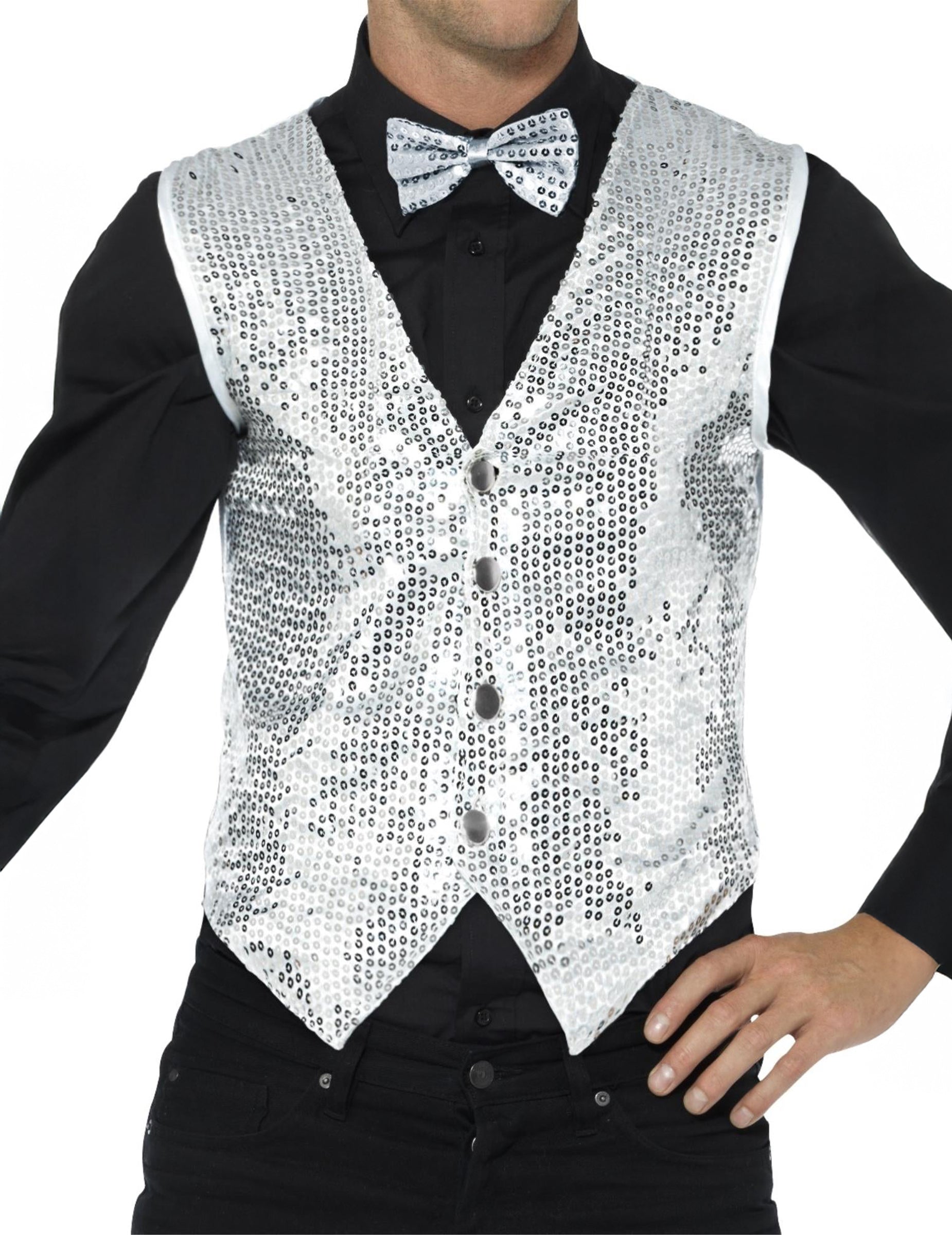 Tato stříbrná flitrovaná vesta je pro muže (součástí je pouze vesta). Vesta má flitry na přední straně a vzadu je vyrobena ze stříbrného saténu. Vesta se zapíná na 4 knoflíky. Na zadní straně má také dvě stříbrné úvazky s přezkou pro stahování vzadu. Tato vesta je ideální jako doplněk kostýmu, ve kterém zazáříte na diskotéce nebo charlestonském večeru.