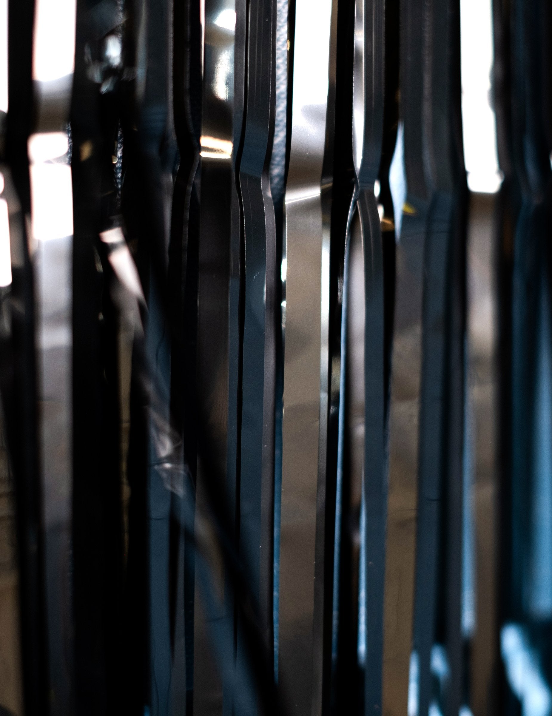 Tato třpytivá černá záclona má rozměry 91 x 244 cm. Díky silnému lepidlu se závěs snadno připevní na dveře a skládá se z několika svislých a lesklých proužků, které umožňují průchod! Tento závěs bude perfektním doplňkem k dekoraci místnosti s tématikou 60. nebo 70. let!