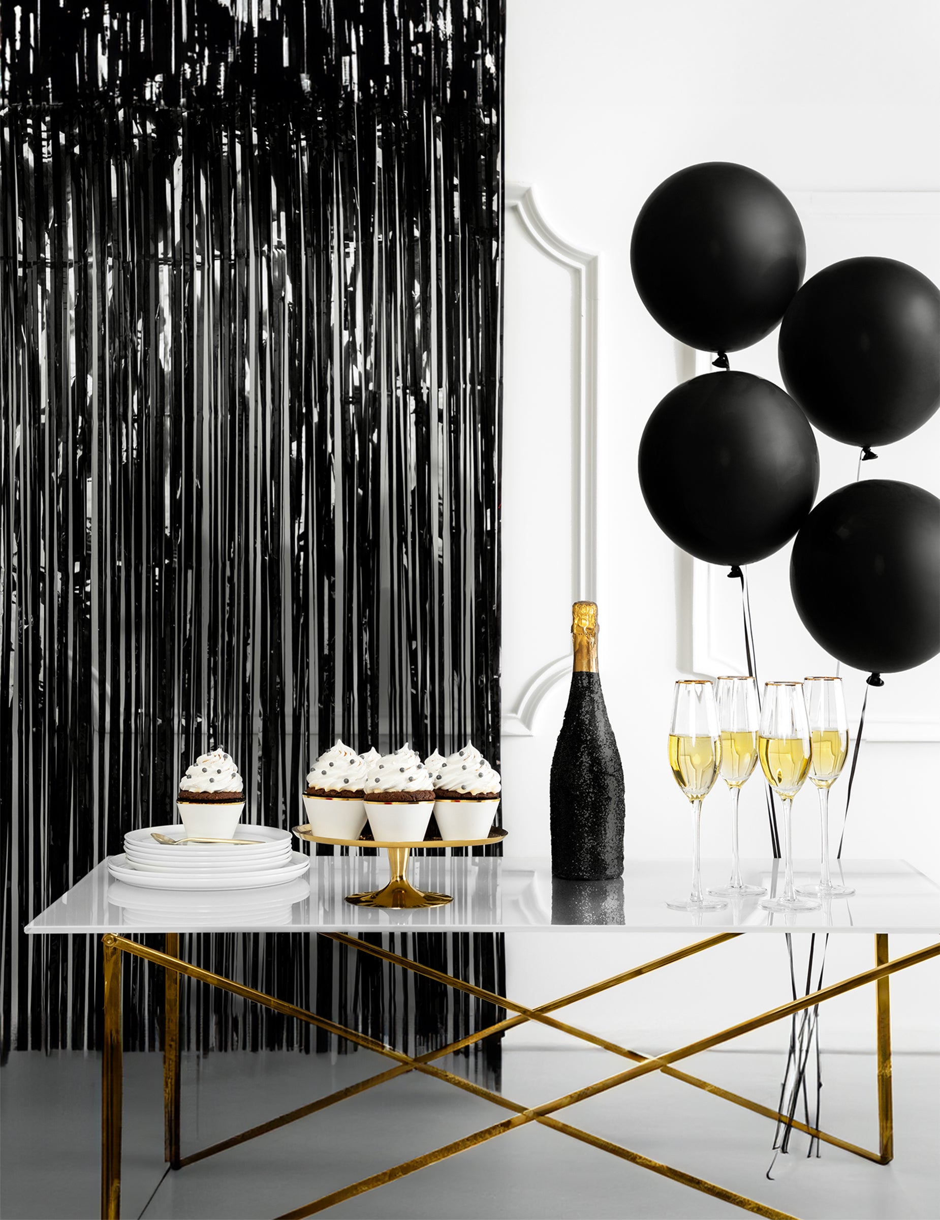Černá třpytivá záclona 244 x 91 cm
