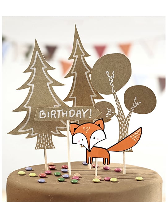 Tato sada obsahuje 5 ozdob na dorty s lesní tematikou. Každá ozdoba je vyrobena z kraftového kartonu v přírodní barvě (kromě lišky) a dodává se s dřevěnými špejlemi, které umožňují připevnění na dort nebo vánoční poleno. Tři představují stromečky, jedna představuje ceduli s narozeninovým výročím a poslední je potištěna liškou. S těmito ozdobami na ozdobení polena si můžete vybrat elegantní a jednoduchou vánoční oslavu.