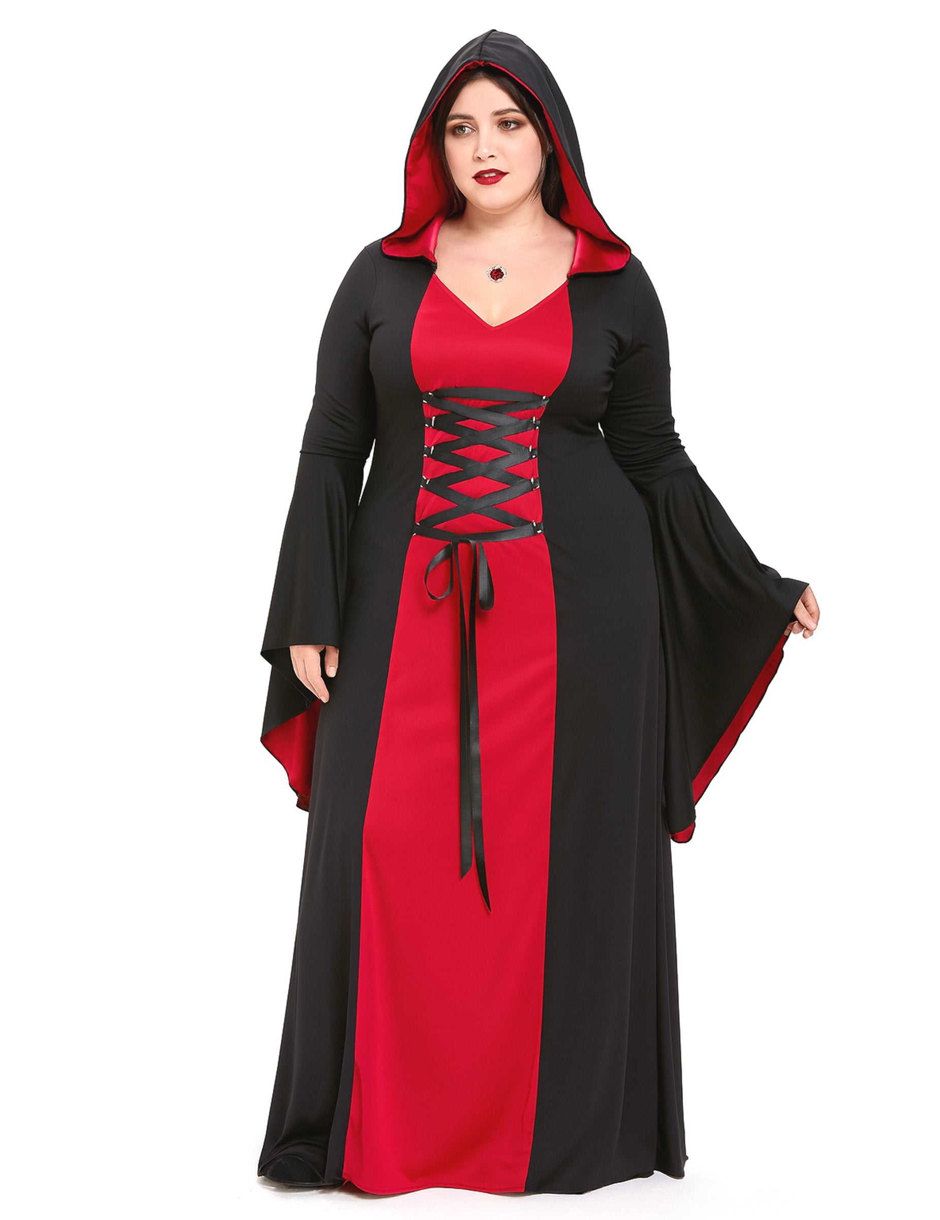 Tento středověký kostým pro ženy se skládá z šatů s kapucí. Dvoubarevné šaty s kapucí jsou velmi dlouhé. Mají hluboký výstřih a tkaničky na zavazování pod hrudníkem. Rukávy jsou široké a rozšířené, stejně jako integrovaná kapuce. Nechte se inspirovat červenočerným vzhledem jako z 5. století! Tento středověký kostým pro ženy je ideální na Halloween nebo na středověký festival.