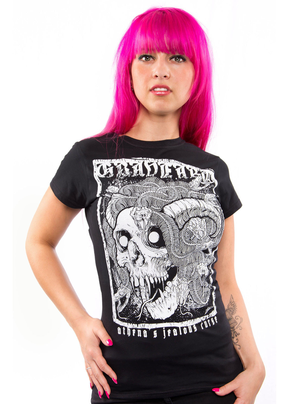 Tento černý top s motivem lebky pro ženy je ideální pro rebelský a tajemný vzhled. Zdobený velkým bílým motivem lebky s rohy a hady dodá vašemu outfitu rockový a temný nádech. Jeho černobílý kontrast je poutavý a dokonale zdůrazní váš styl. Pohodlný a snadno se kombinuje s tmavými kalhotami nebo krátkou sukní, tento top se rychle stane klíčovým kouskem vašeho šatníku. Ideální na halloweenskou párty!