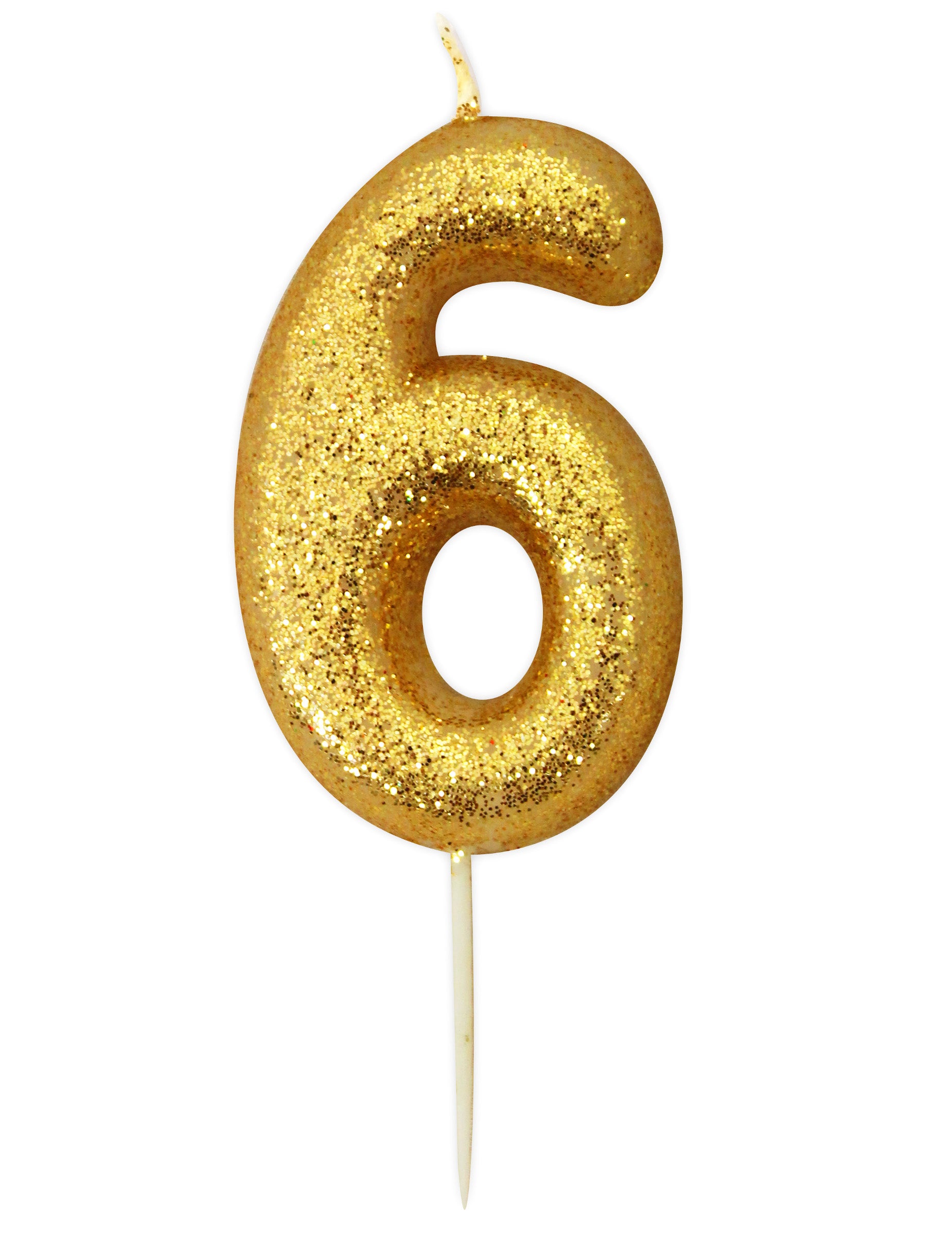 Zlatá třpytivá narozeninová svíčka číslo 6, 6,5 cm