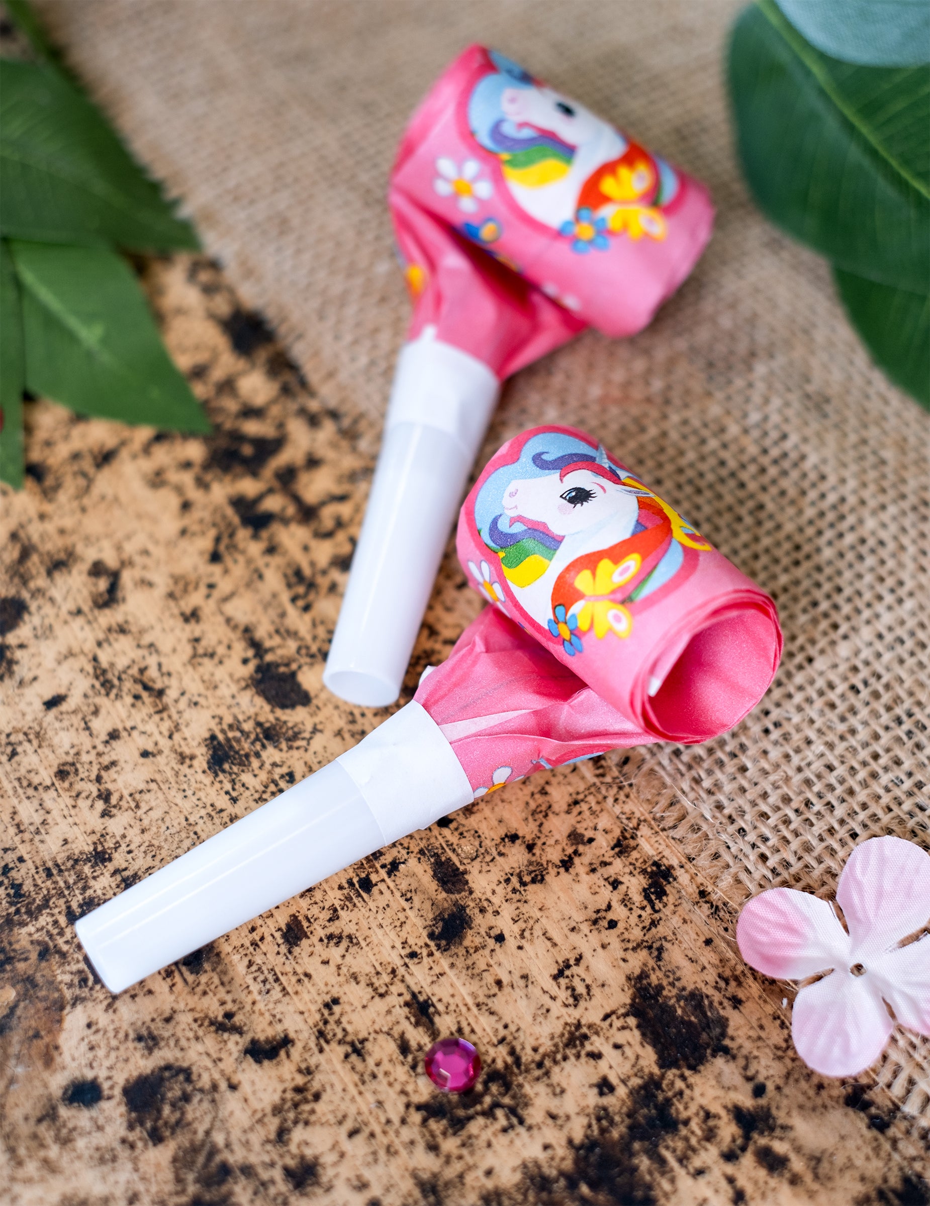 Tyto sans-gênes se prodávají v mnoha 8. Jsou v růžovém papíru, vytištěny s docela jednorožcem s tisíci barev. Tip je bílý plastový píšťalku. Chcete -li se bavit a vydělat maximální hluk, vyhodit do píšťalky rozbalit cívku! Vaše dítě bude potěšeno, že vydává hluk se svými přáteli, při příležitosti narozeninového dne v zemi jednorožců!