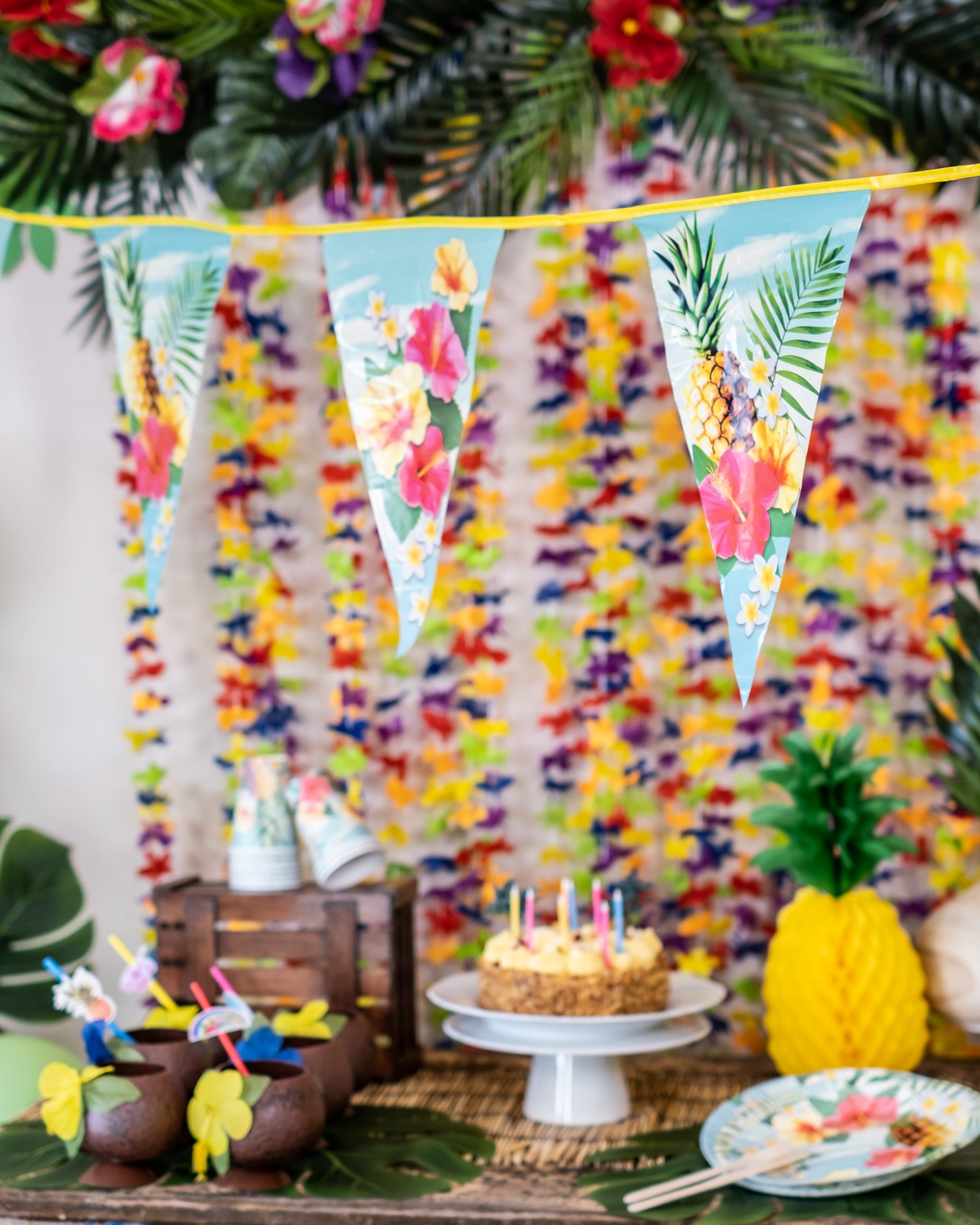 Tento vynikající věnec se skládá z velkých jemných a flexibilních plastových vlajek měřících 23 cm široký po dobu 33 cm. Poté, co se rozvinula, Gurlande měří 6 metrů a ozdobuje pěkné havajské květiny, váš interiér nebo exteriér během večírku na téma Havaje!