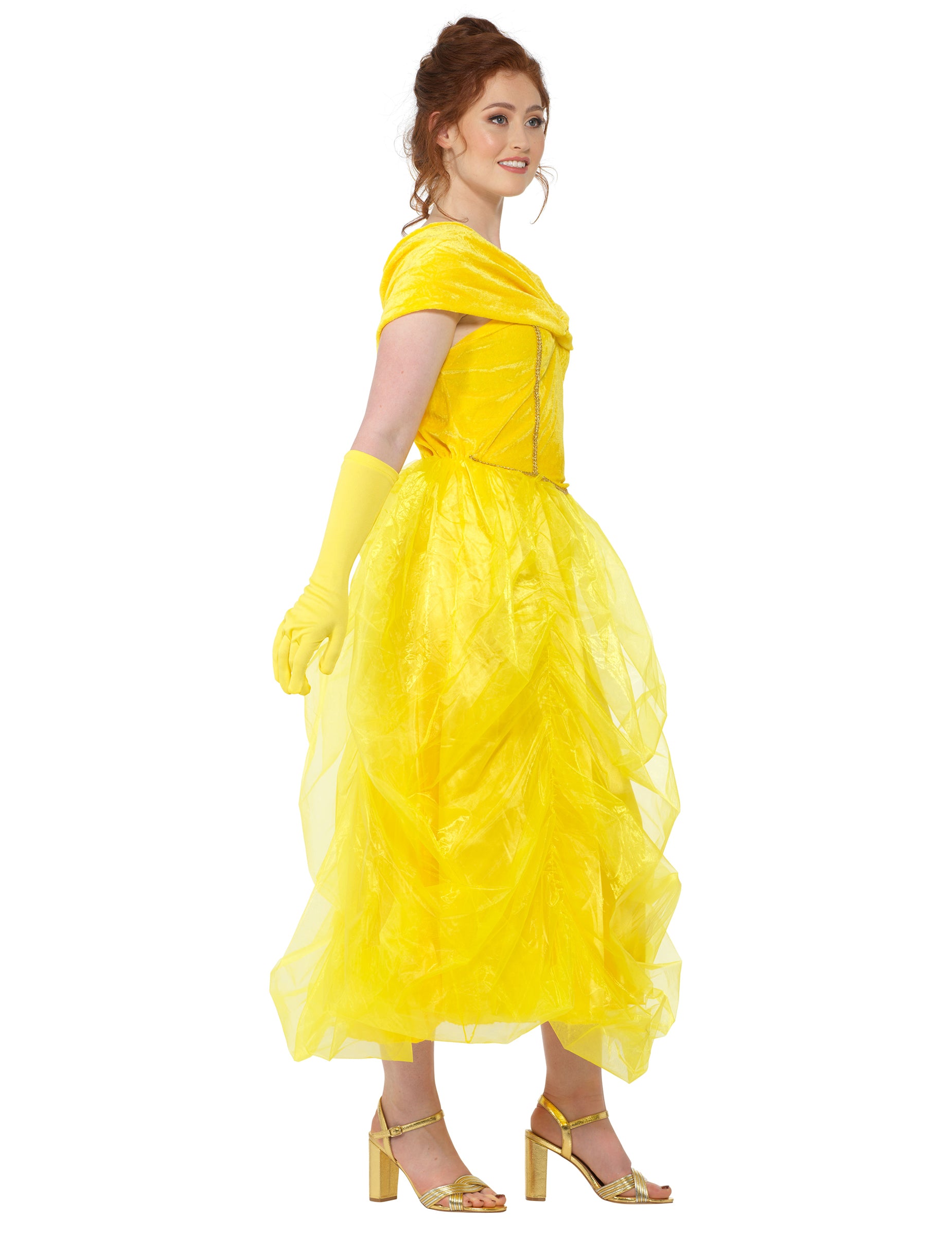 Tento krásný dámský kostým princezny se skládá ze šatů a rukavic. Ve žluté barvě jsou šaty dlouhé s bandeau rukávy na odhalená ramena. Spodní část šatů má pěkný žlutý tylový závoj. Rukavice jsou dlouhé a žluté, aby ladily k šatům. Tyto šaty budou ideální pro to, abyste byli nejkrásnější na maškarním večírku s přáteli!