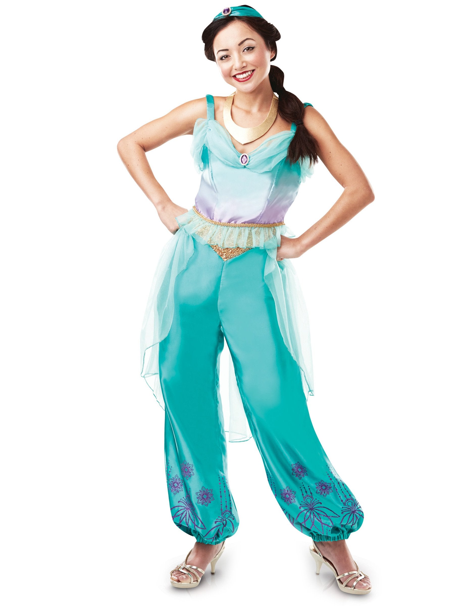 Tento dámský kostým Jasmine™ je v oficiální licenci Disney™. Sada obsahuje top, kalhoty, náhrdelník a čelenku (paruka a boty nejsou součástí balení).